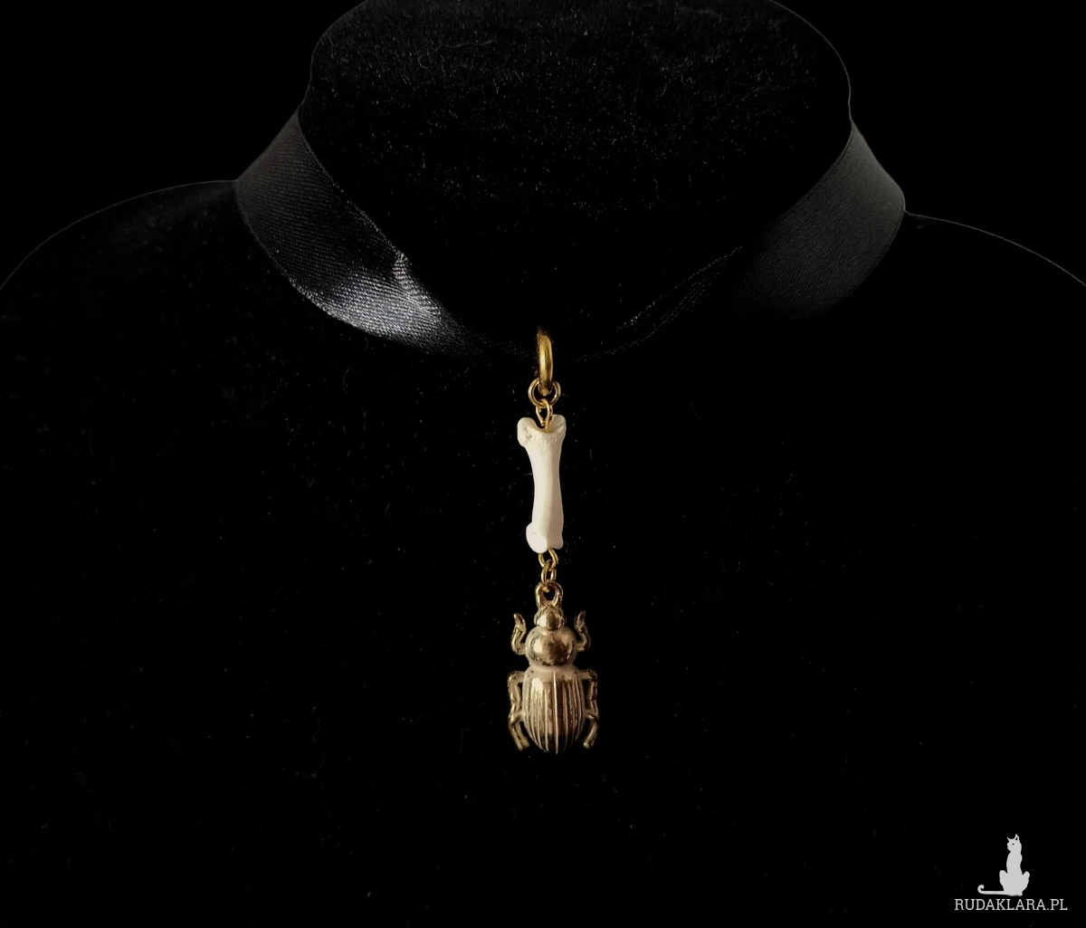 Delikatny choker z zawieszką w postaci żuka i kostką.