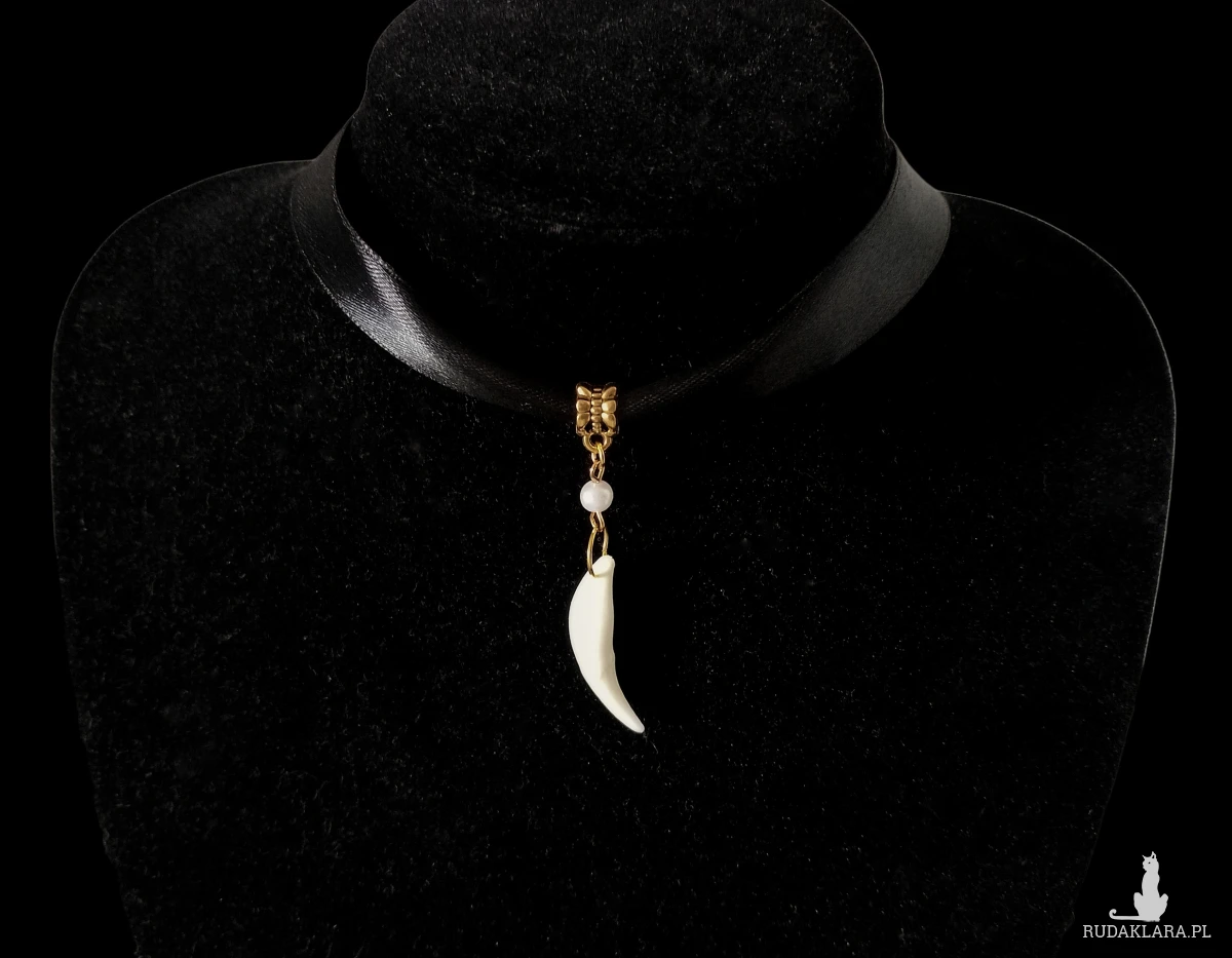 Delikatny choker z zawieszką wykonaną z kła lisa. 🦊