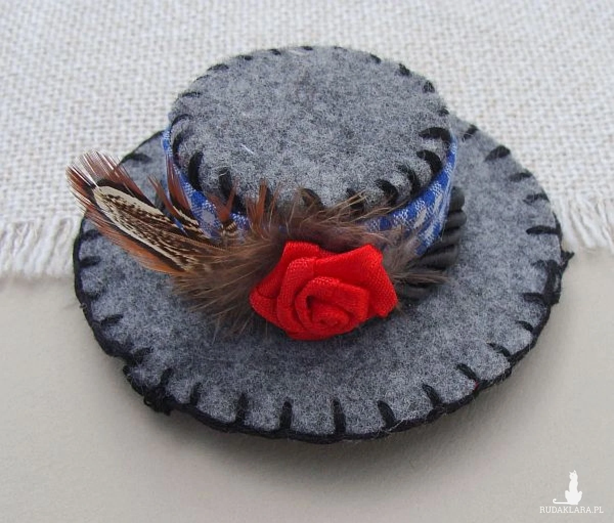 Mini filcowy kapelusz – urocza, ręcznie wykonana ozdoba, która idealnie uzupełni stylizację na Oktoberfest lub inne folkowe wydarzenia. Starannie dopracowany w każdym detalu, świetnie pasuje do tradycyjnych strojów ludowych.