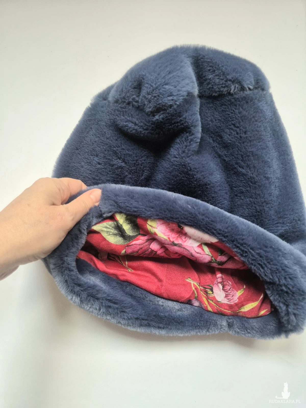Czapka futrzana niebieska ociepła na podszewce, prezentuje się niezwykle oryginalnie nie dla szarej myszki dla odważnych pewnych siebie kobitek polecam pojedyncza sztuka box a1
