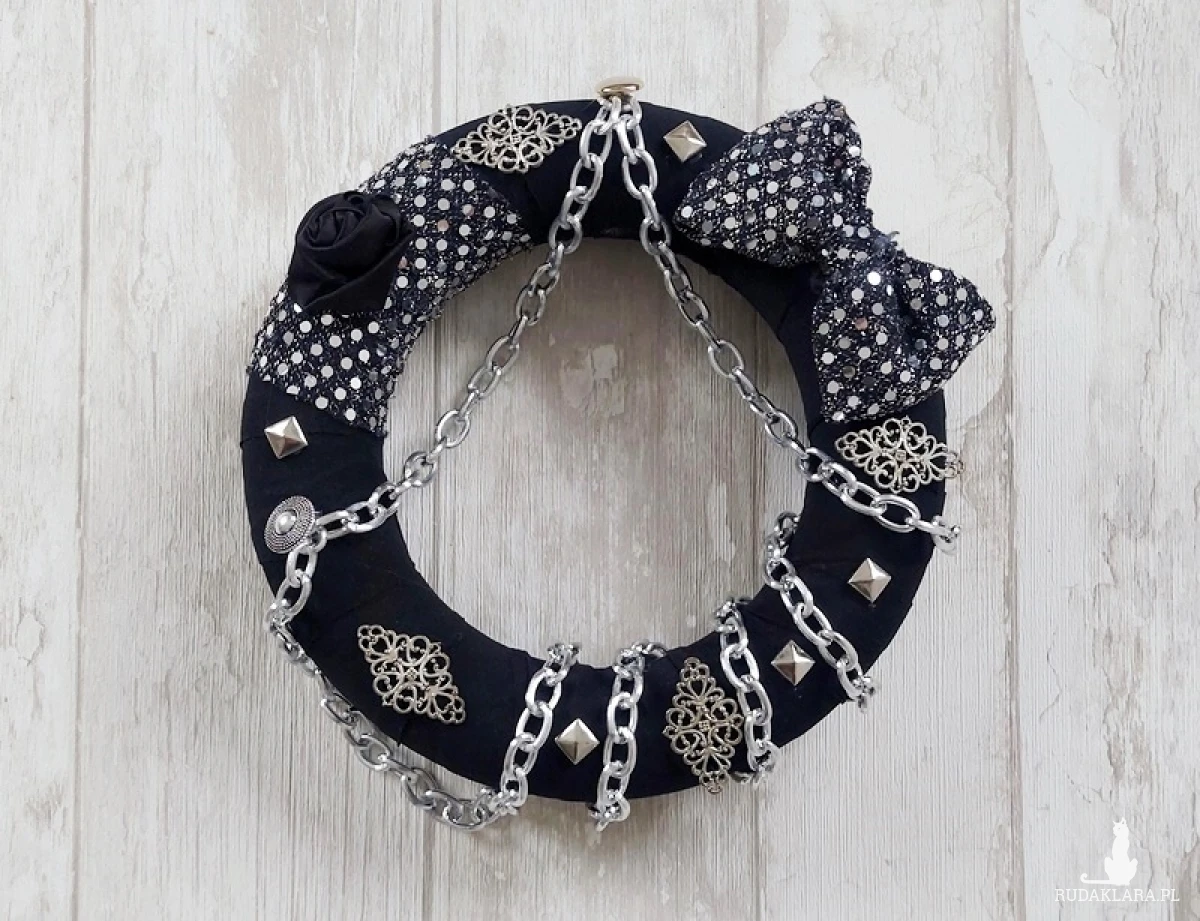 Unikatowy, ręcznie wykonany wianek w kolorze czarnym, który wyróżni się na ścianie, drzwiach salonu, przedpokoju czy korytarza.