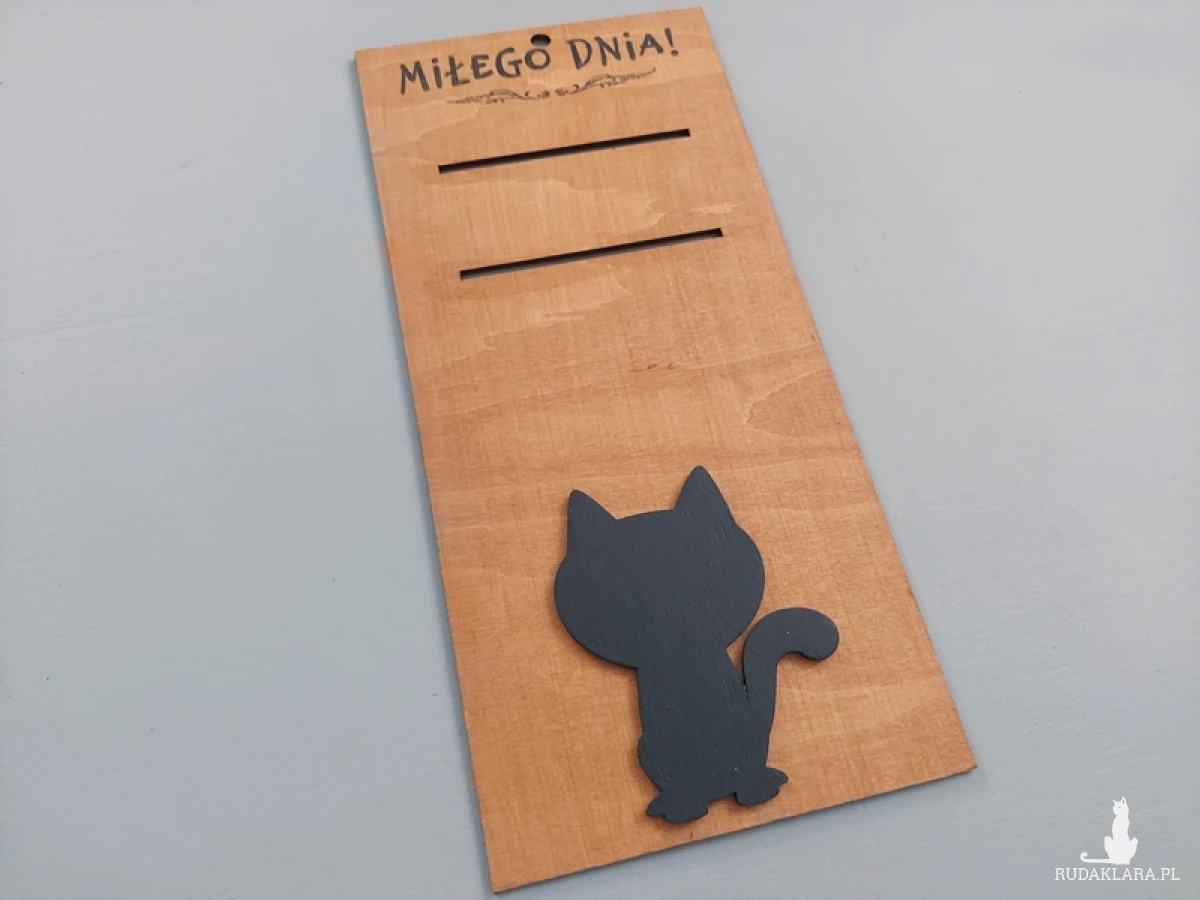 Wieszak na kalendarz pełni funkcję praktyczną, a jednocześnie jest dekoracją. Ta, w kolorze ciemnego dębowym, z widocznymi słojami drewna, będzie pasowała do stylu rustykalnego, a także do tradycyjnego wystroju wnętrza. To praktyczny prezent dla mamy, babci, cioci czy przyjaciółki. Idealny upominek dla wielbiciela/wielbicielki kotów.