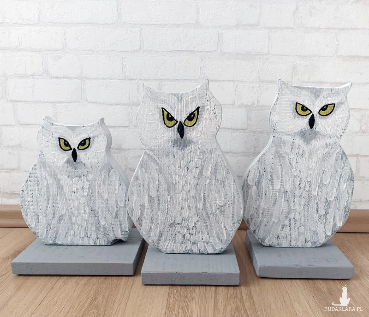 Zestaw trzech ręcznie wykonanych sówek to urocza dekoracja, która doda ciepła i charakteru każdemu wnętrzu. Te unikalne figurki, malowane ręcznie farbami akrylowymi, pełnią funkcję zarówno ozdobnych postaci, jak i subtelnych obrazów. Ich stonowana kolorystyka w odcieniach bieli i szarości wkomponuje się w różnorodne aranżacje, tworząc spójną i elegancką atmosferę. Sóweczki mogą stać razem, tworząc jedną kompozycję, lub być rozmieszczone w różnych kątach pomieszczenia, wprowadzając harmonię i spokój. Idealne do salonu, sypialni czy na prezent.