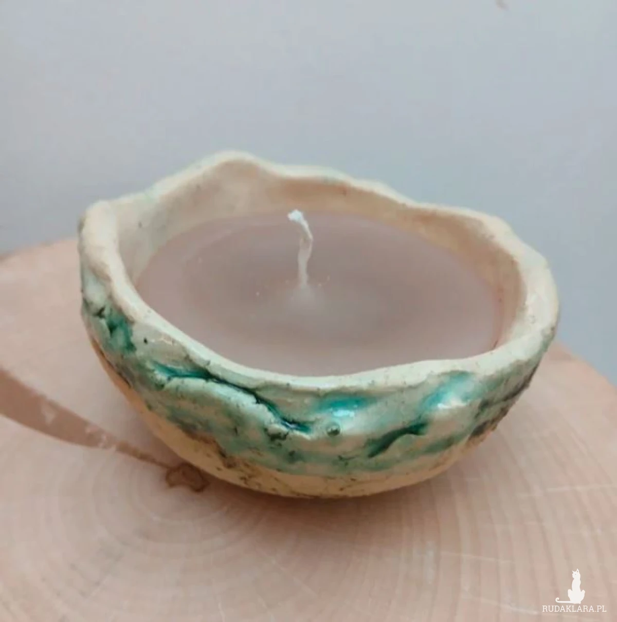 Świeczka w recznie robionej glinianej misce, artystyczny ceramiczny lampion, świeczka w ceramicznym naczyniu. Pomysł na prezent. Świeca bezzapachowa, nietoksyczna, sojowa. Miseczka 8cm srednicy, 5cm wysokości. Zapakowana w celofan z kokardą. Naturalna, organiczna forma surowa glina świeca ekologiczna wegańska rzemieślnicza rękodzieło galeria sztuki sztuka użytkowa folk