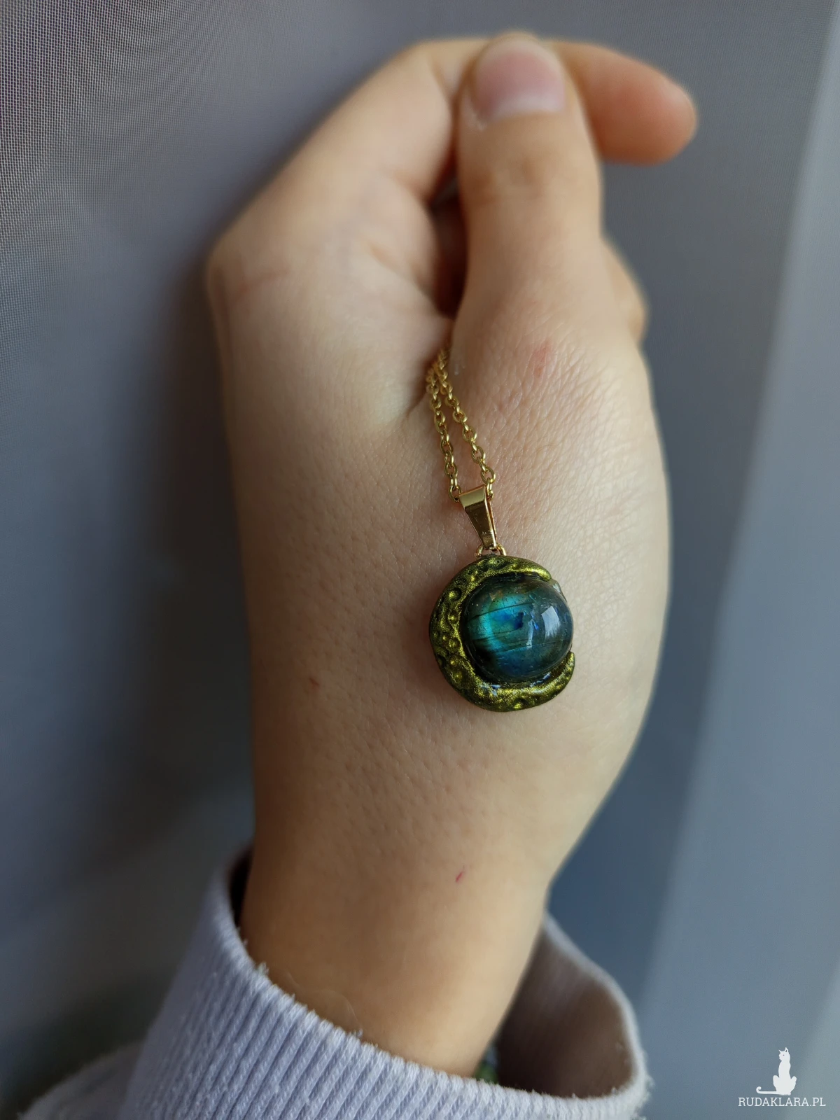 Naszyjnik księżyc z labradorytem. Idealny na prezent, Magic, fantasy, goblincore, drgon, Fairycore