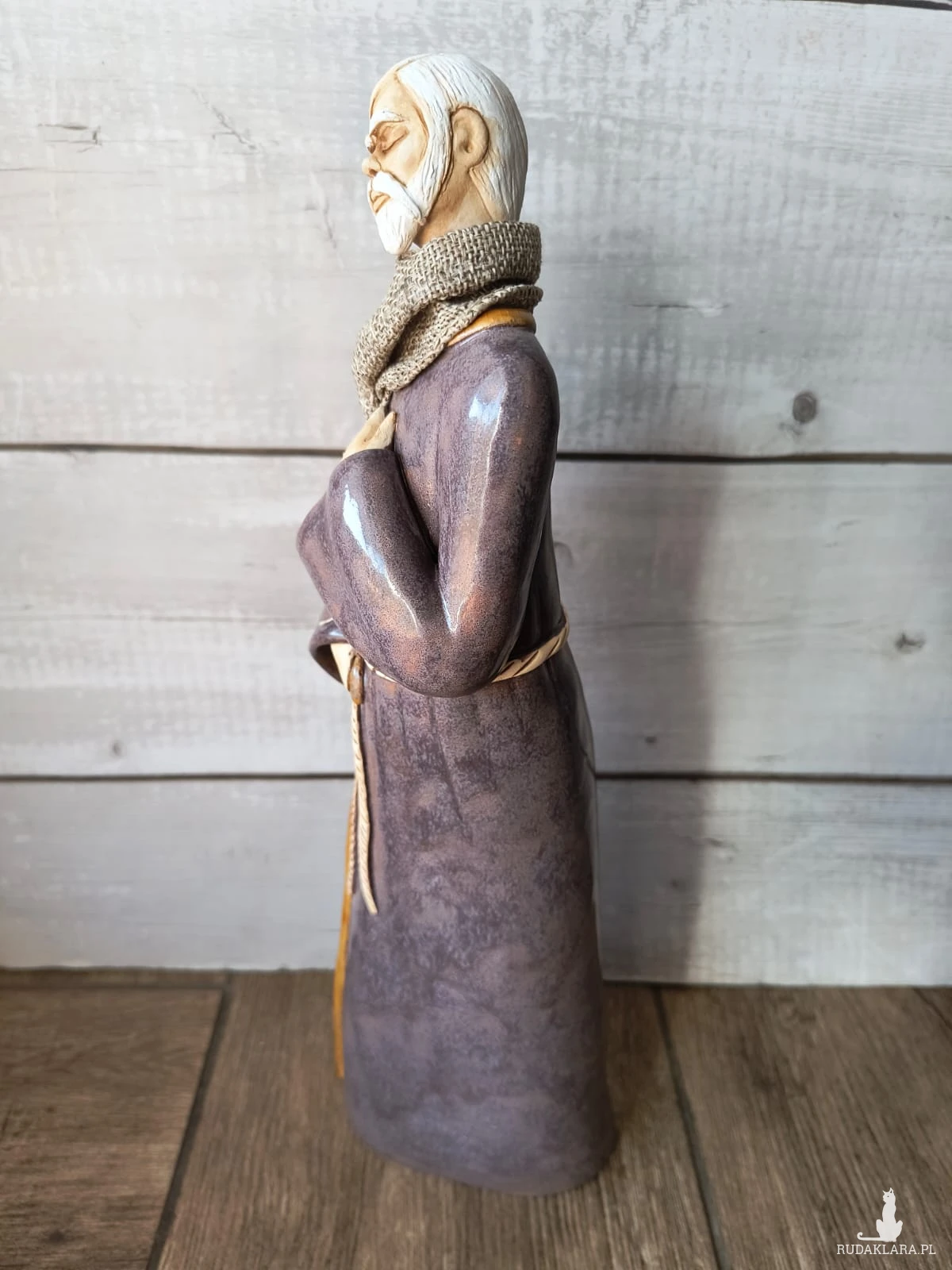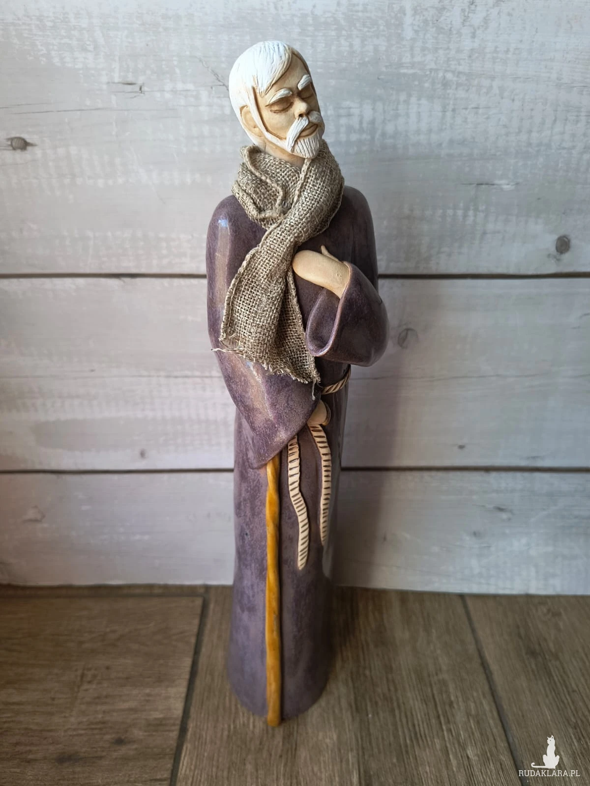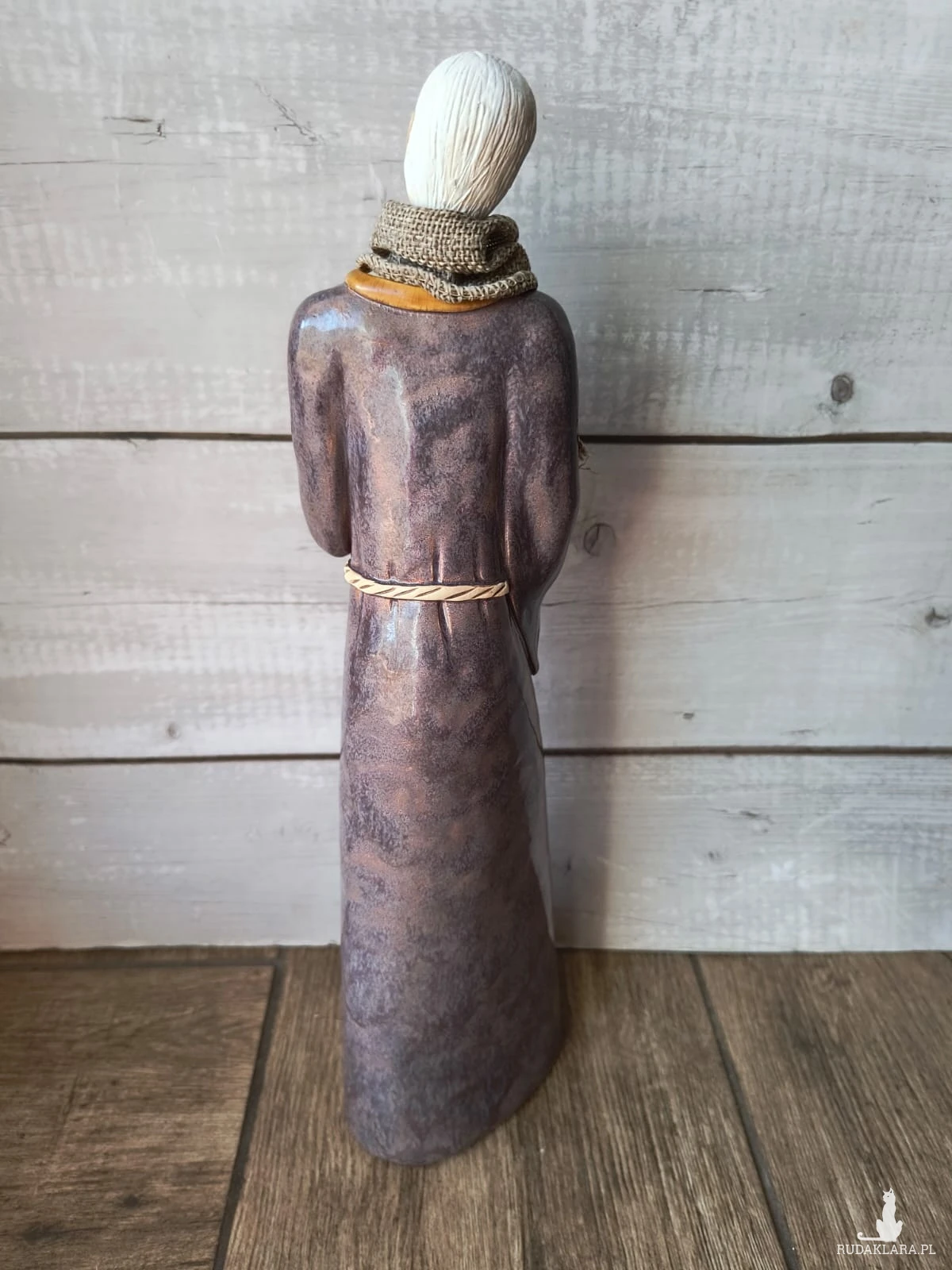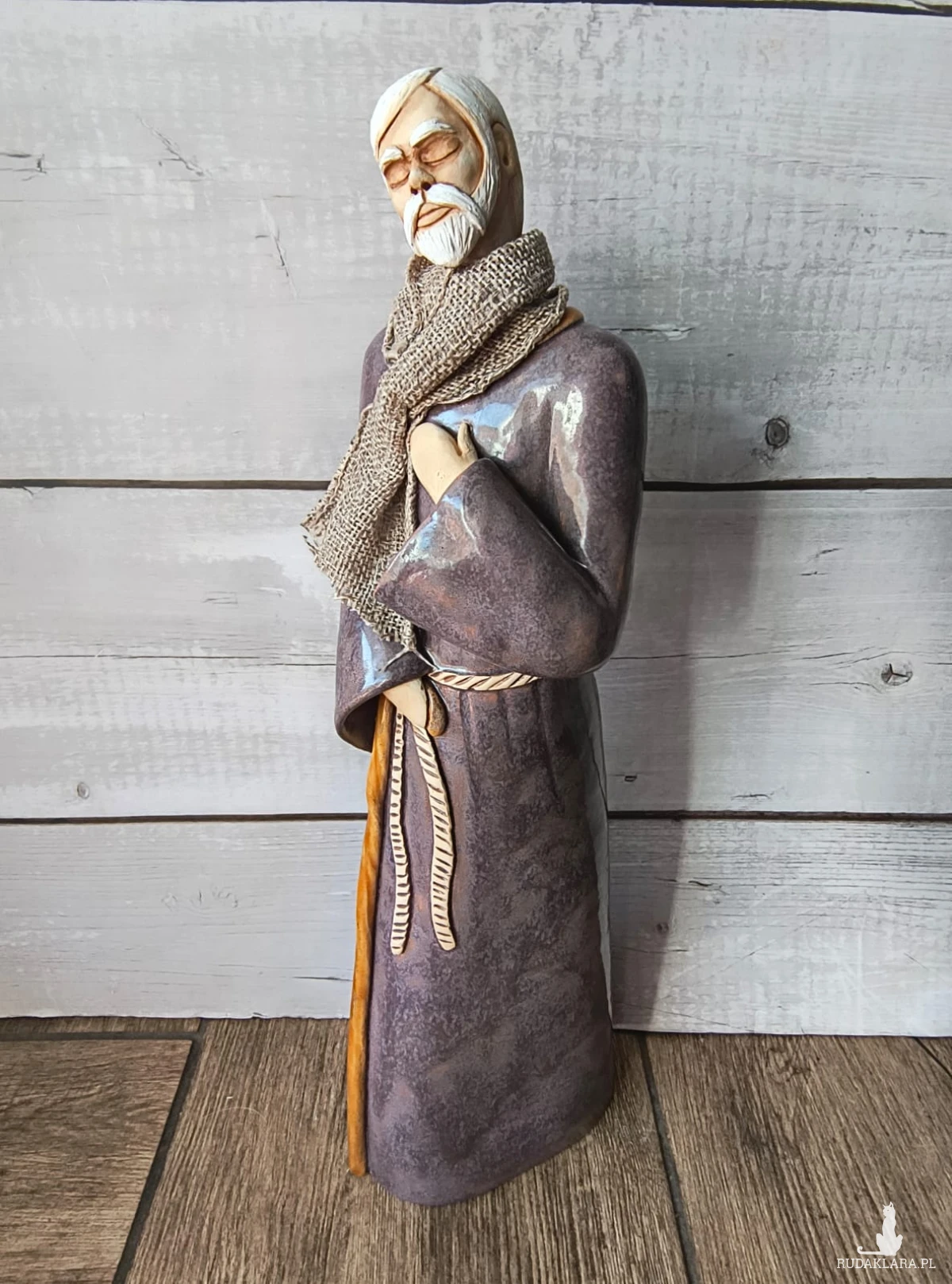 Figura Św. Józefa wykonana z gliny szamotowej wypalona na biskwit, a następnie szkliwiona w temp. ok 126- stopni C. Wysokość ok 36 cm. Czas realizacji ok 30 dni roboczych.