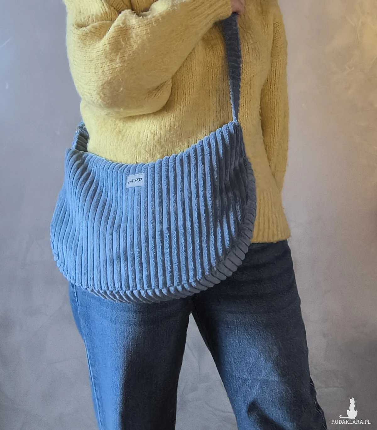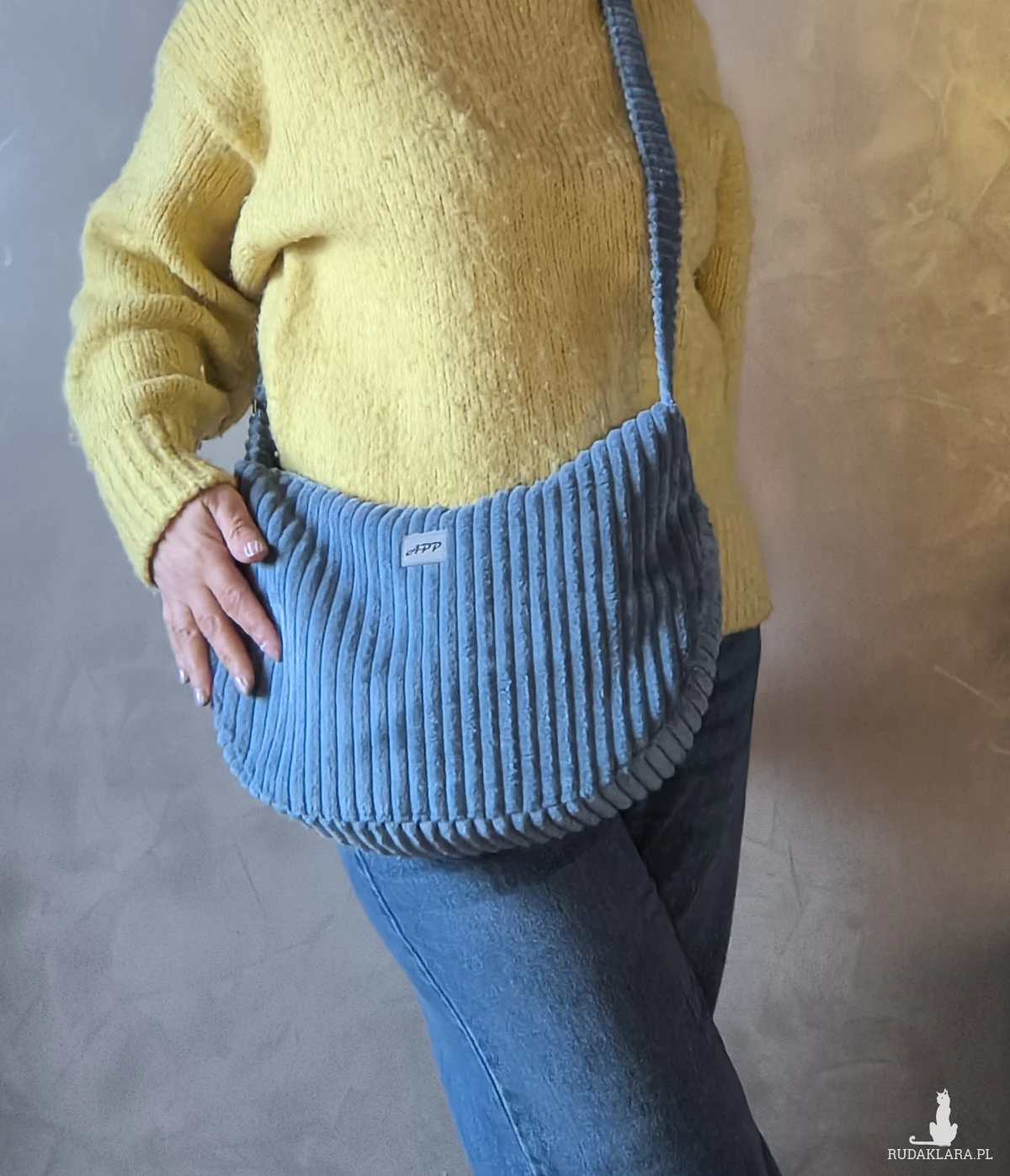 Sztruksowa, torba, która zachwyca już przy pierwszym dotyku. Jest miękka i przytulna, wygodna w noszeniu i na tyle pojemna, że zmieści wszystko, czego potrzebujesz na co dzień – od portfela i notes po 0.5 l. butelkę wody czy kosmetyczkę.