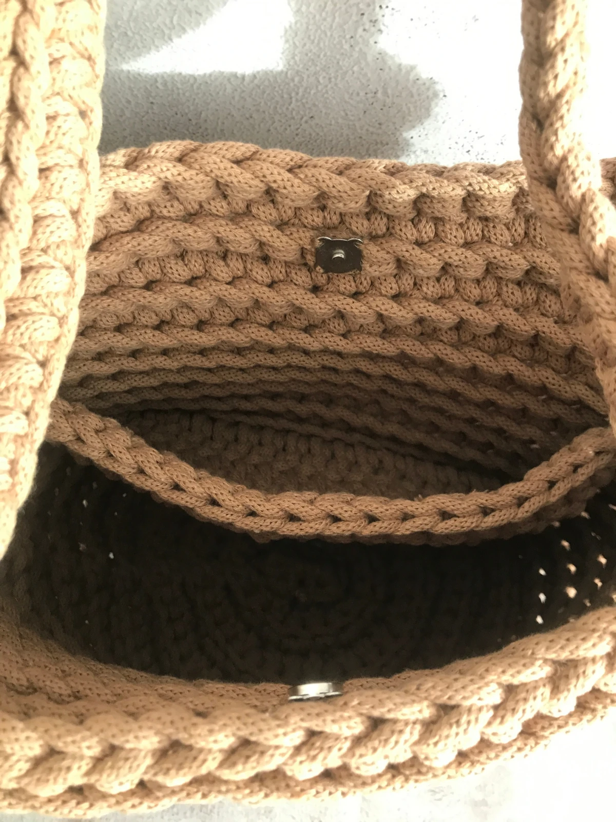 Torebka szydełkowa,koszyk na szydełku z sznurka bawełnianego.