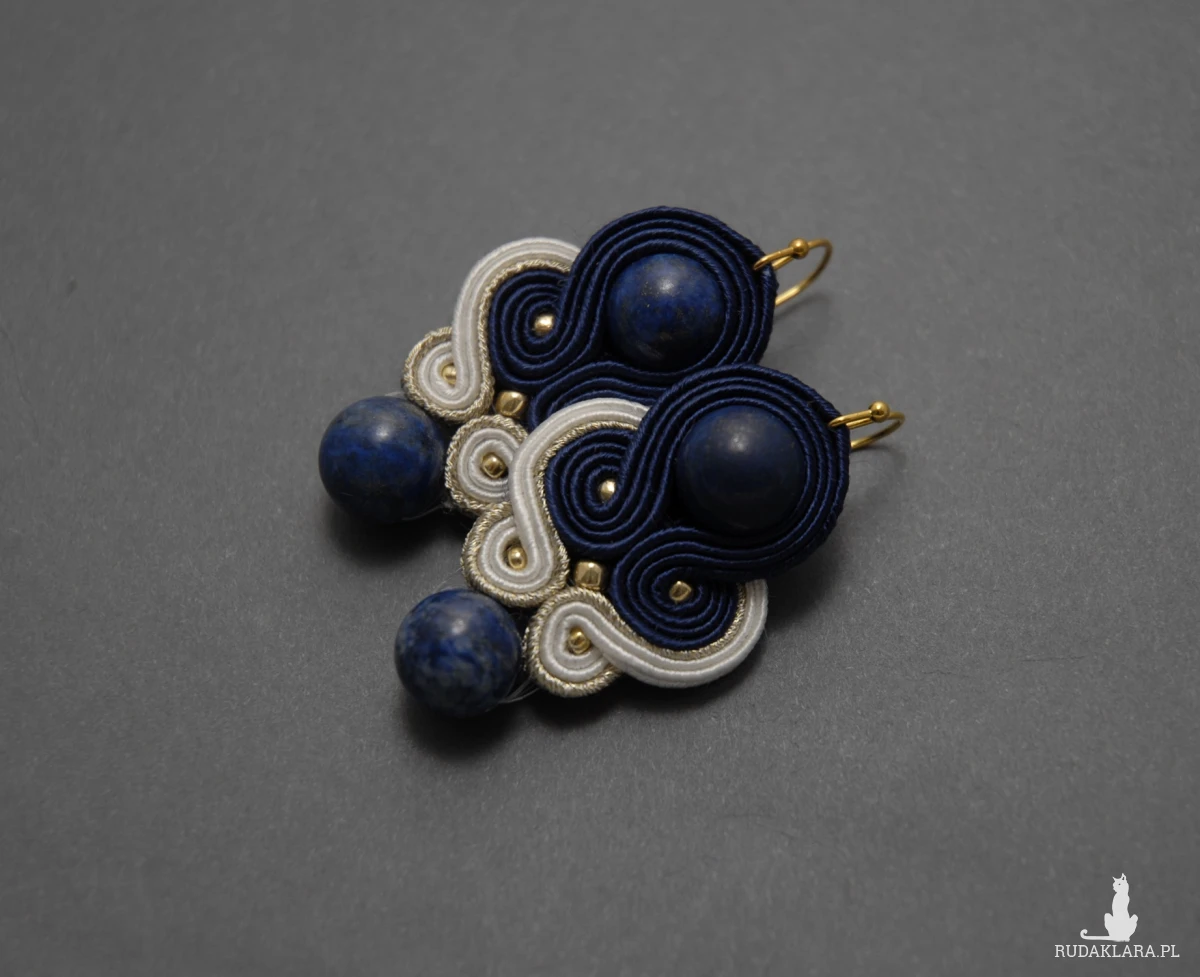 oferuję kolczyki lub klipsy zrobione techniką sutasz, ozdobione chryzokolą i drobnymi koralikami