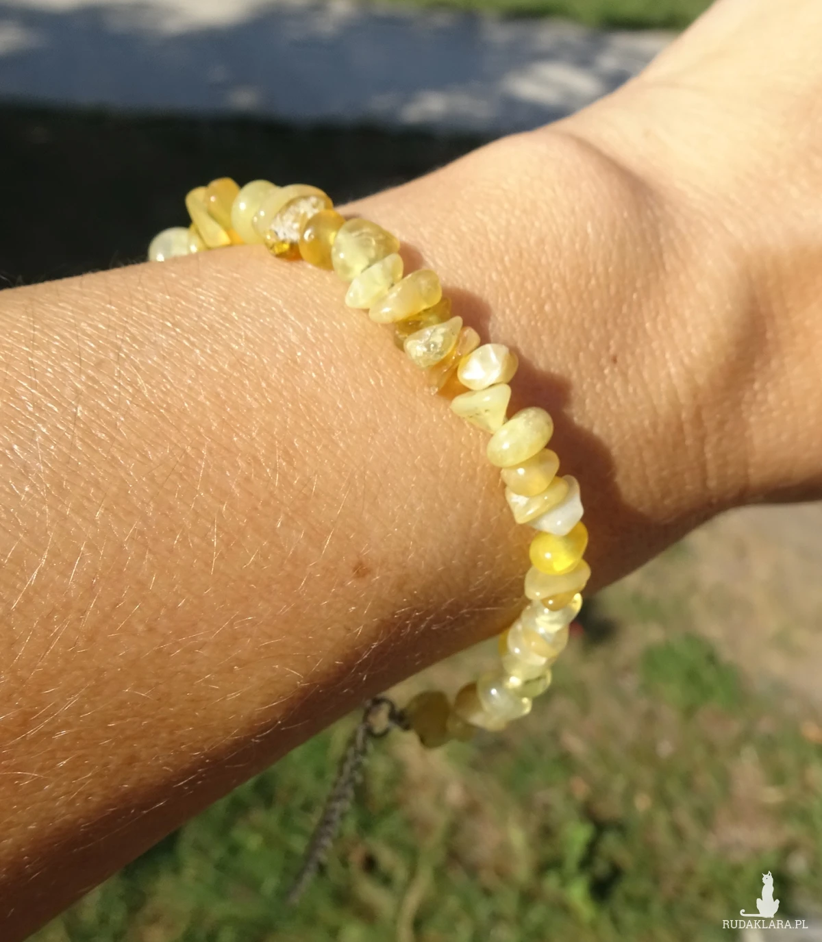 Bransoletka z sieczki z żółtych opali wielkości 5-8mm i elementów ze stali szlachetnej