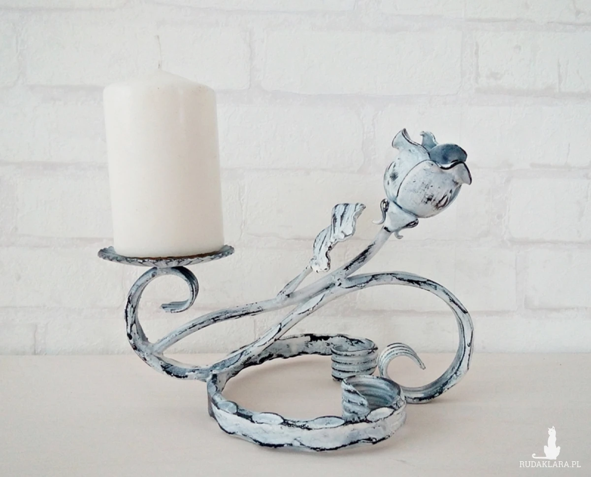 wpisze się w ten klimat doskonale. Postarzany świecznik metalowy w kolorze