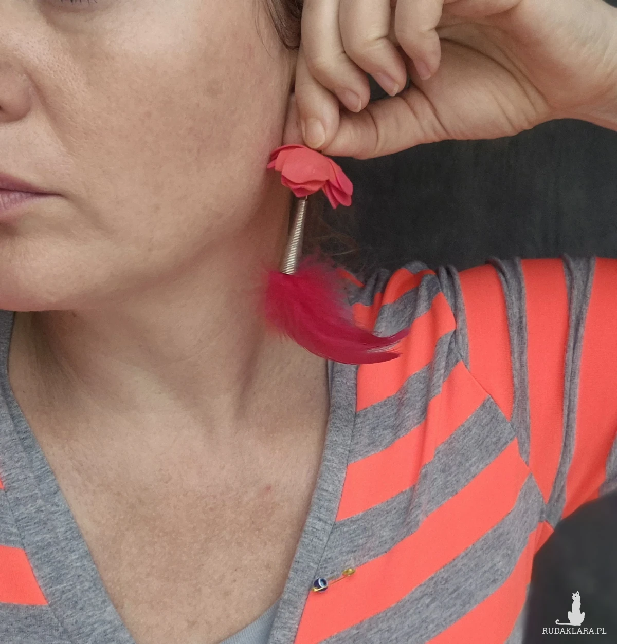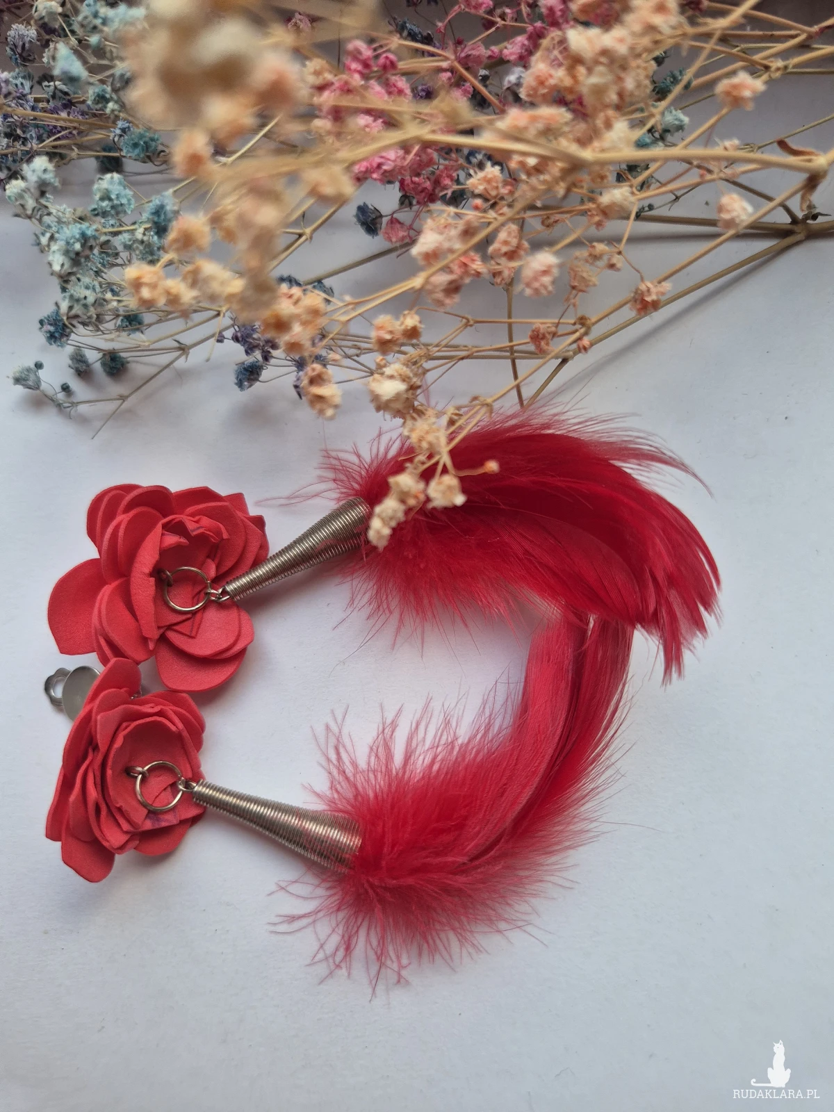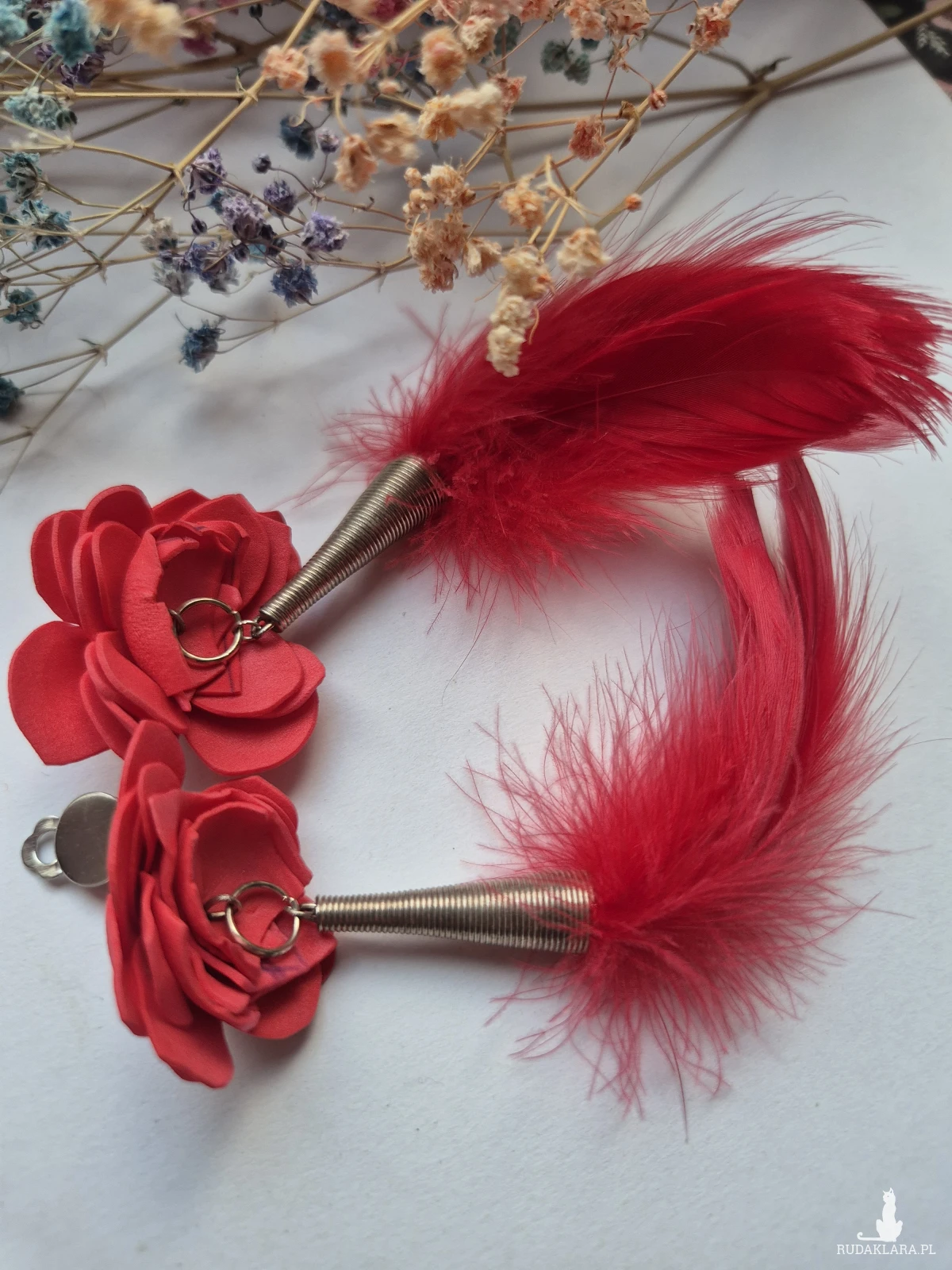 Klipsy czerwone kwiaty i pióra leciutkie,polecam