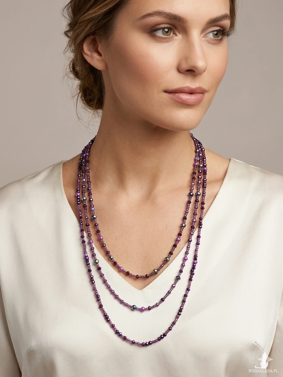 Trzy rzędy o różnych długościach pięknie wysmuklają sylwetkę. Idealny zarówno do codziennych stylizacji, jak i wieczorowych wyjść.