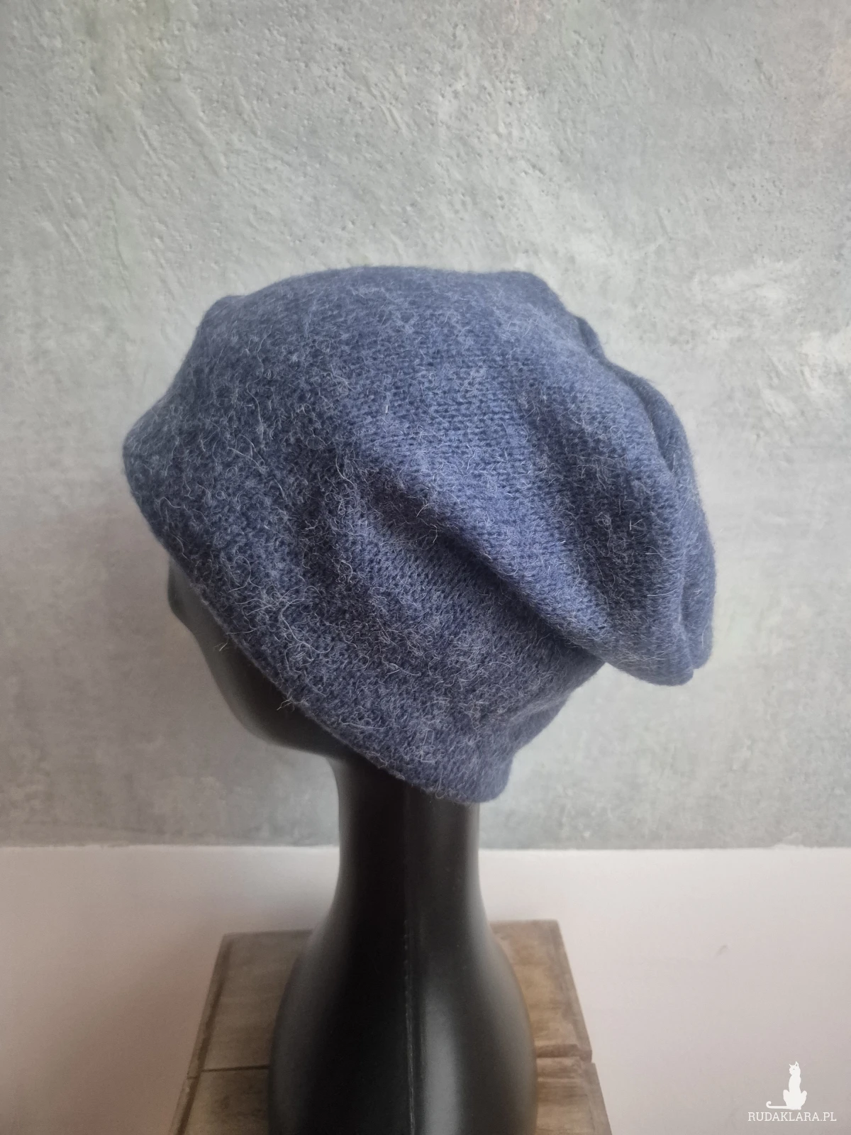 Ciepła czapka niebieska wełniana unisex na podszewce rękodzieło rozmiar uniwersalny Smerfetka polecam box a1