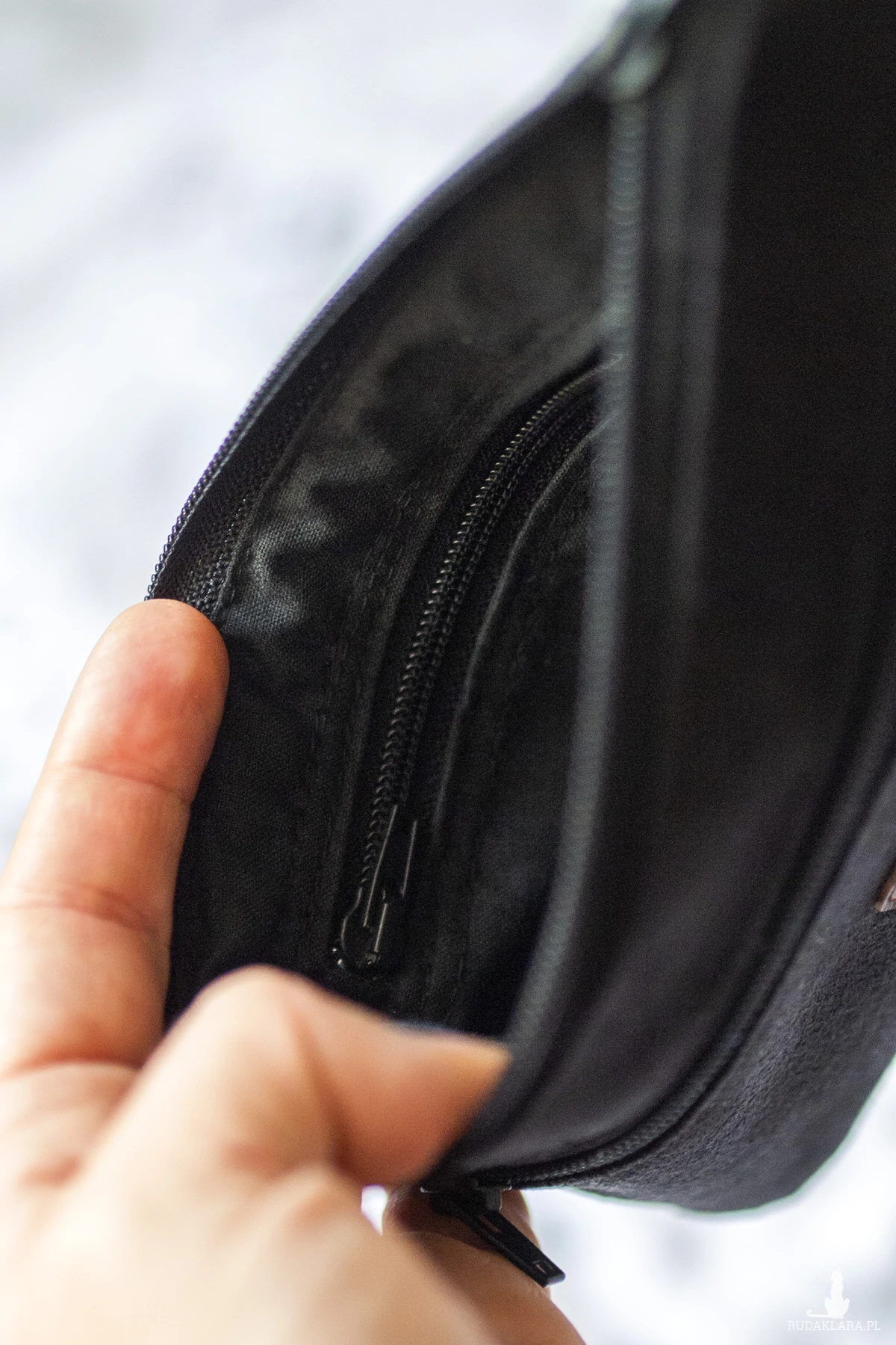 Prosty wodoodporny portfel wykonany z czarnego nubuku.
