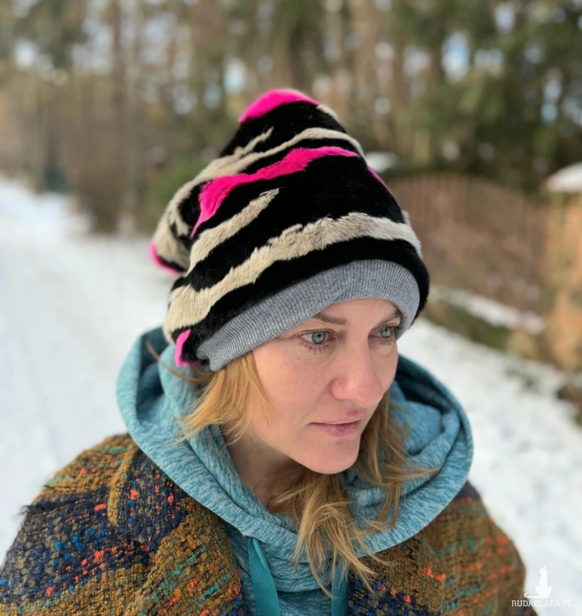 Futrzana czapka na podszewce duża szalona na pewno nie znikniesz w tłumie jest miękka i ciepła rozmiar uniwersalny Box T1