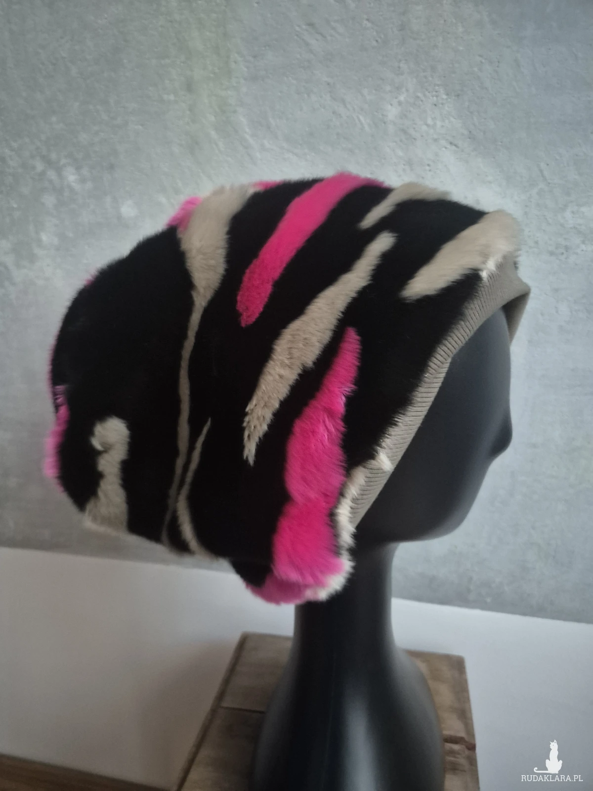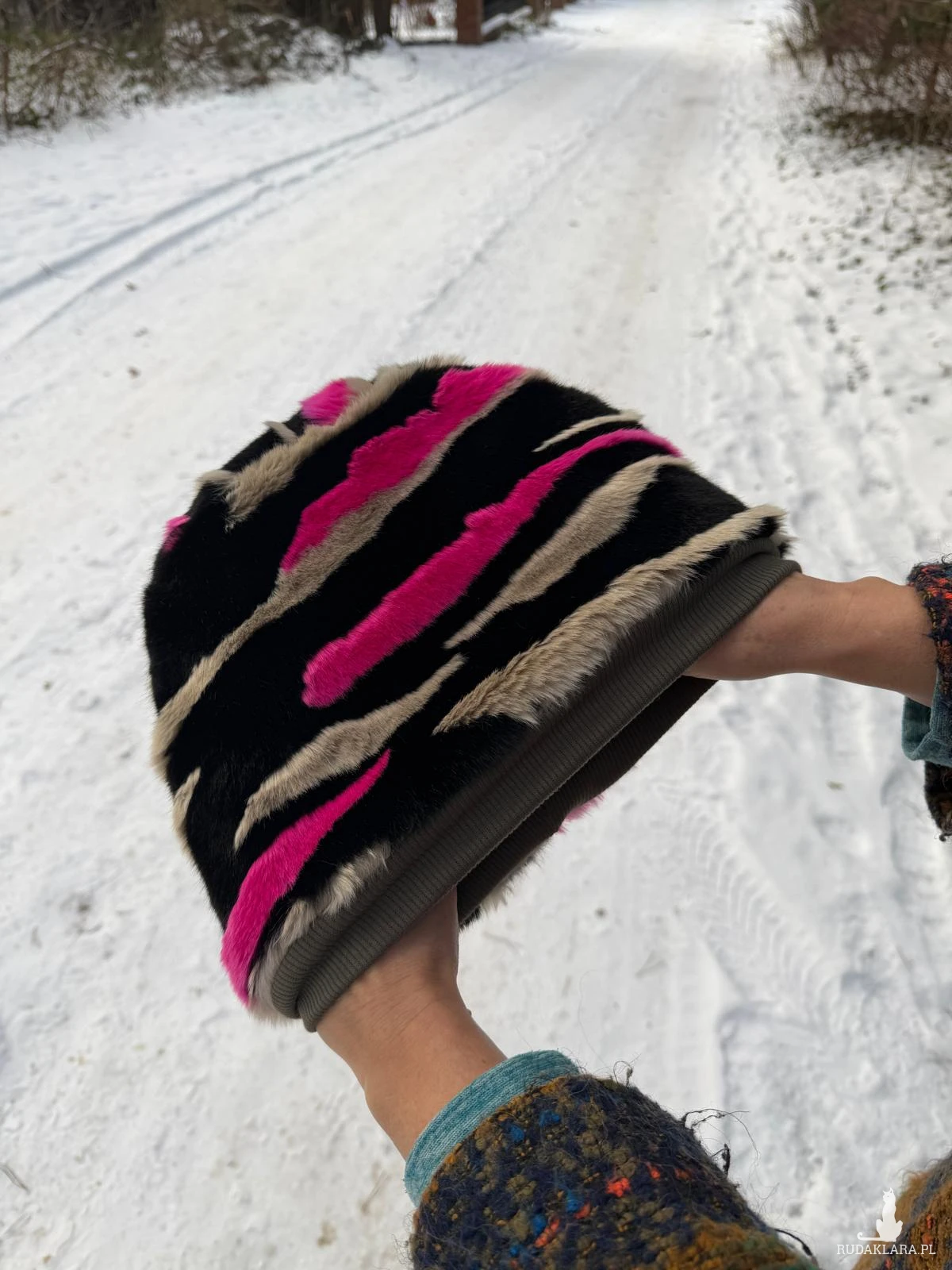 Futrzana czapka na podszewce duża szalona na pewno nie znikniesz w tłumie jest miękka i ciepła rozmiar uniwersalny Box T1