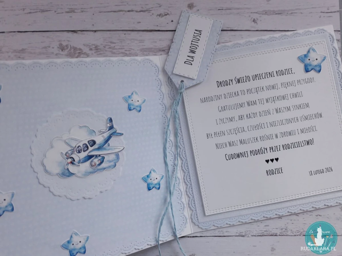 Życzenia z okazji narodzin synka, wypisane na tej unikatowej, ręcznie robionej kartce, z pewnością sprawią radość świeżo upieczonym rodzicom i będą piękną pamiątką tego wyjątkowego dnia.