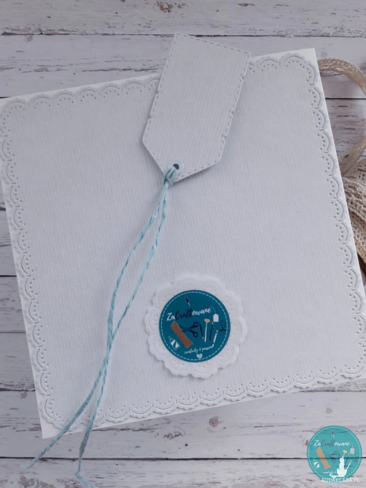 Do kartki dołączam również GRATIS w postaci widocznej na zdjęciu etykietki, za pomocą której można podpisać prezent dla Maluszka i przyczepić ją do wstążki, którą obwiązany jest upominek, za pomocą sznureczka, który również znajduje się w zestawie.