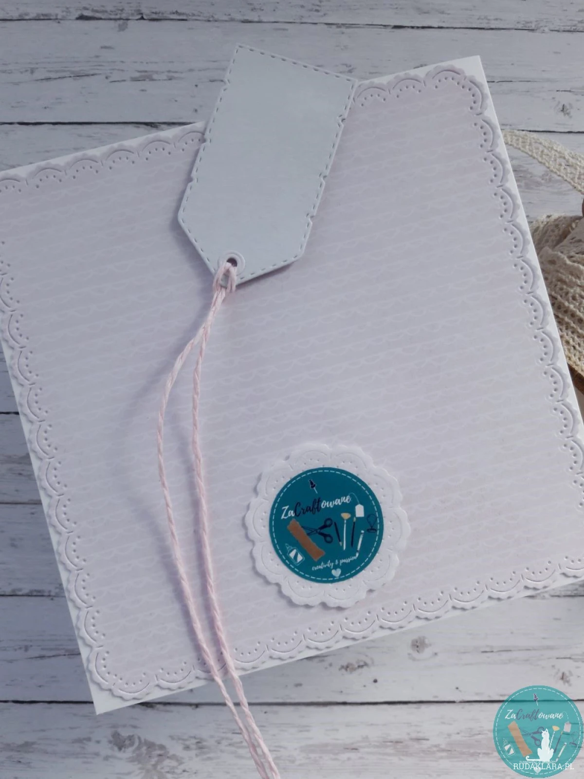 Do kartki dołączam również GRATIS w postaci widocznej na zdjęciu etykietki, za pomocą której można podpisać prezent dla małej solenizantki i przyczepić ją do wstążki, którą obwiązany jest upominek, za pomocą sznureczka, który również znajduje się w zestawie.