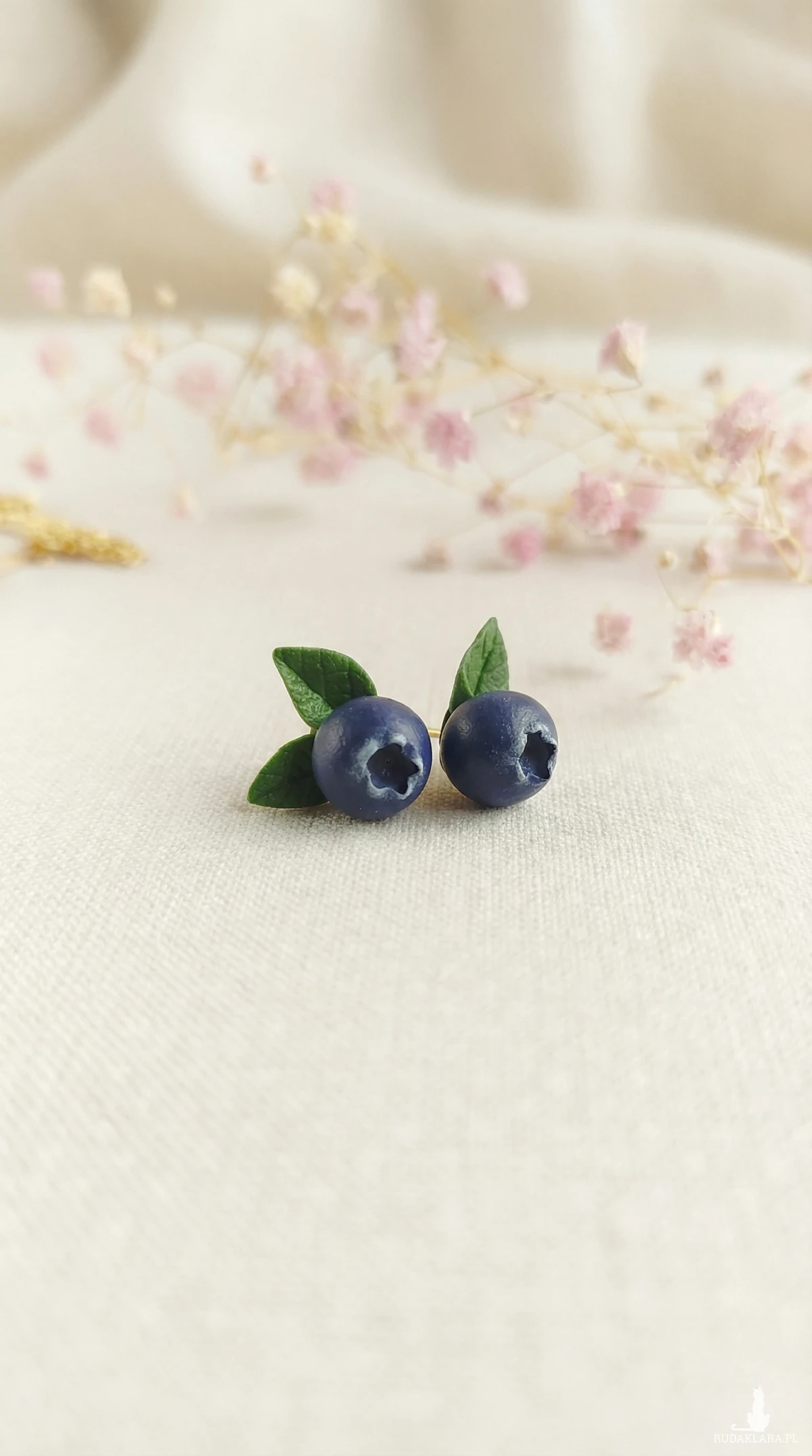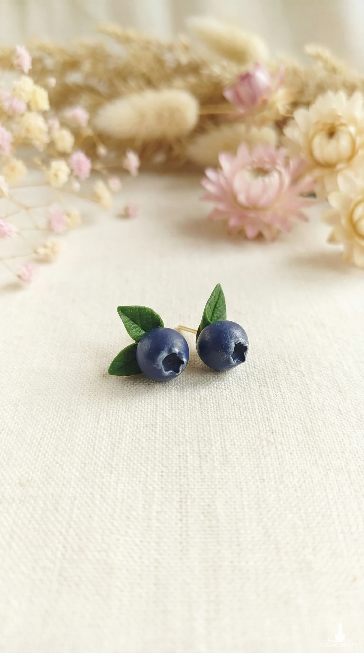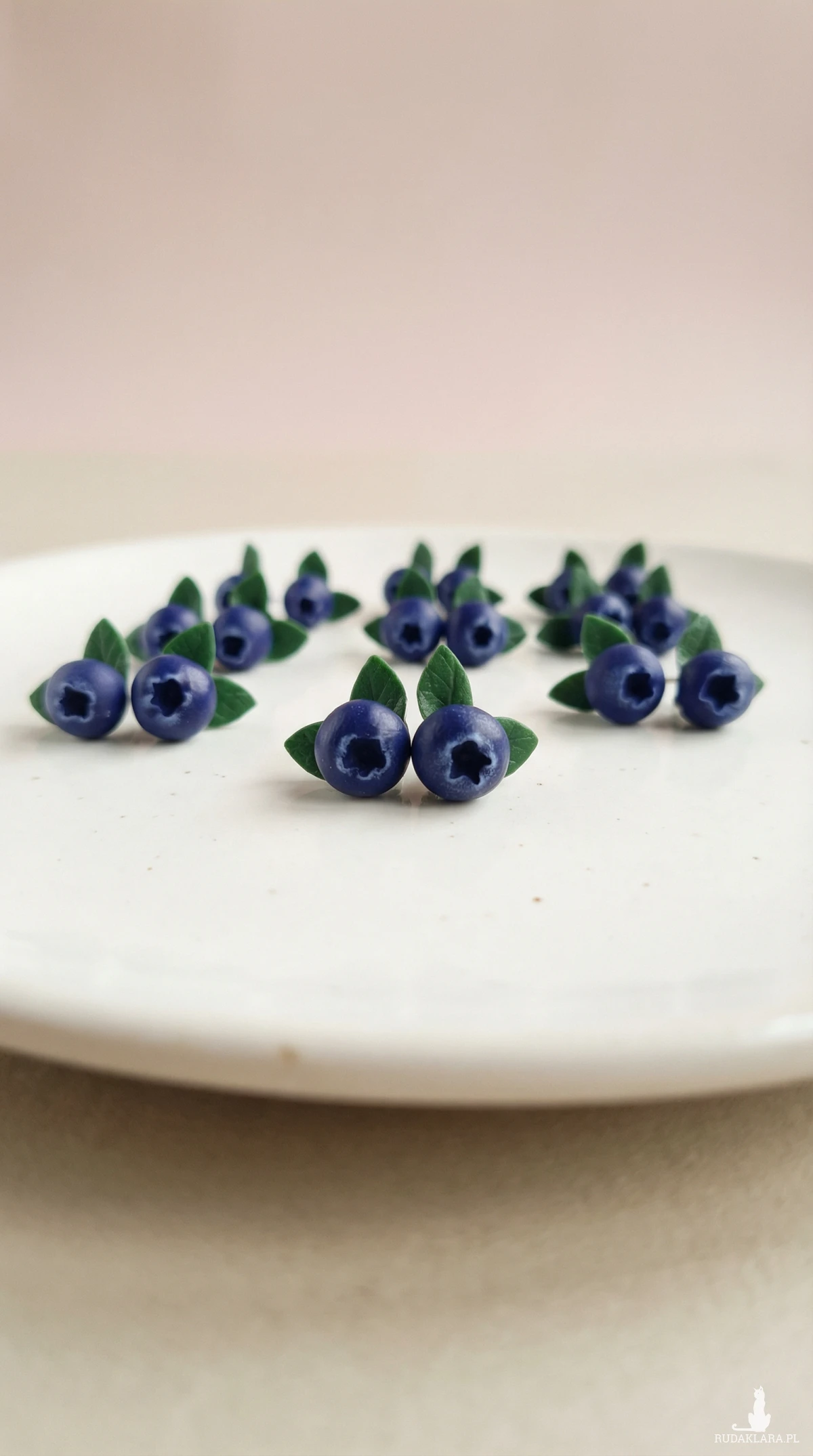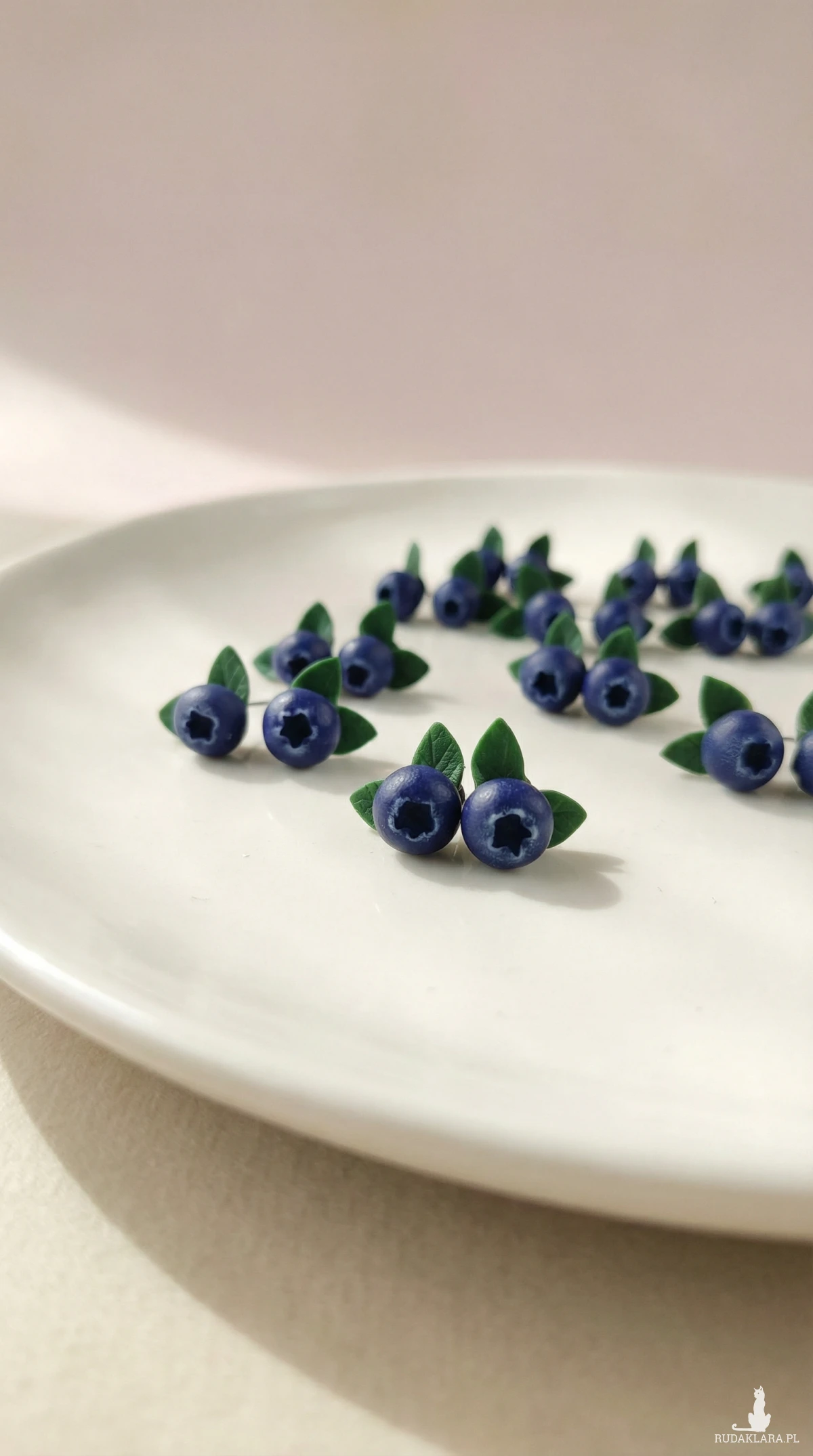 Urocze drobne kolczyki z owocem jagody, wykonane ręcznie z profesjonalnej masy termoutwardzalnej