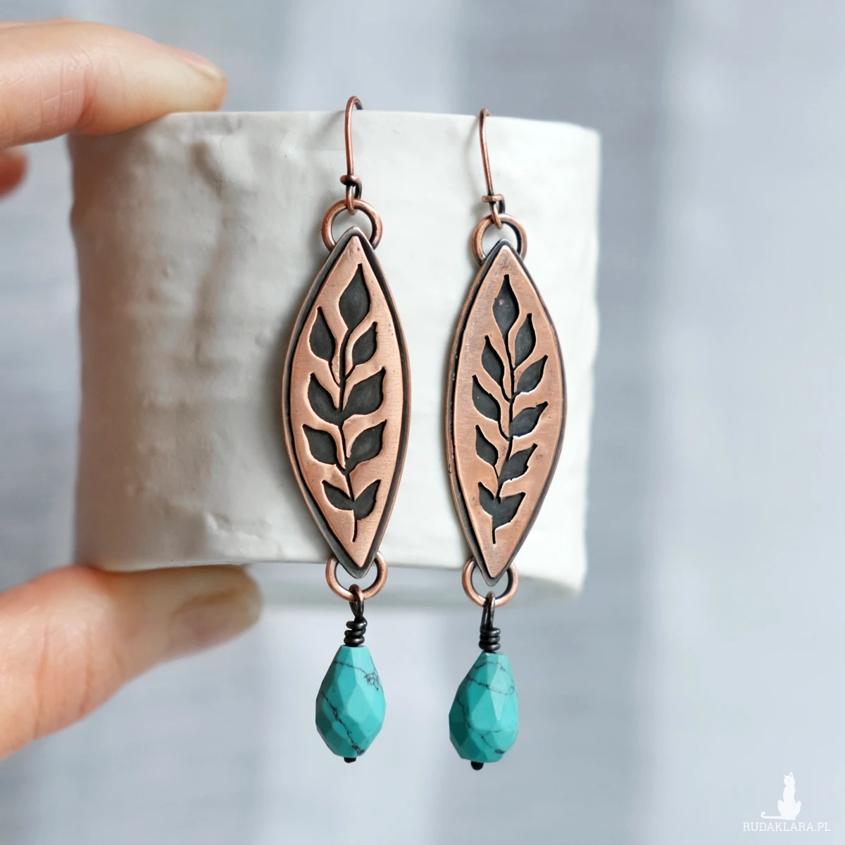 * Miedź z czasem delikatnie zmienia kolor i ciemnieje - to naturalne. Do czyszczenia biżuterii polecam blok polerski/pilnik do czyszczenia srebra. UWAGA! Przecieraj jedynie wierzchnią, jaśniejszą część biżuterii, aby nie zetrzeć patyny, która celowo znajduje się w zagłębieniach.