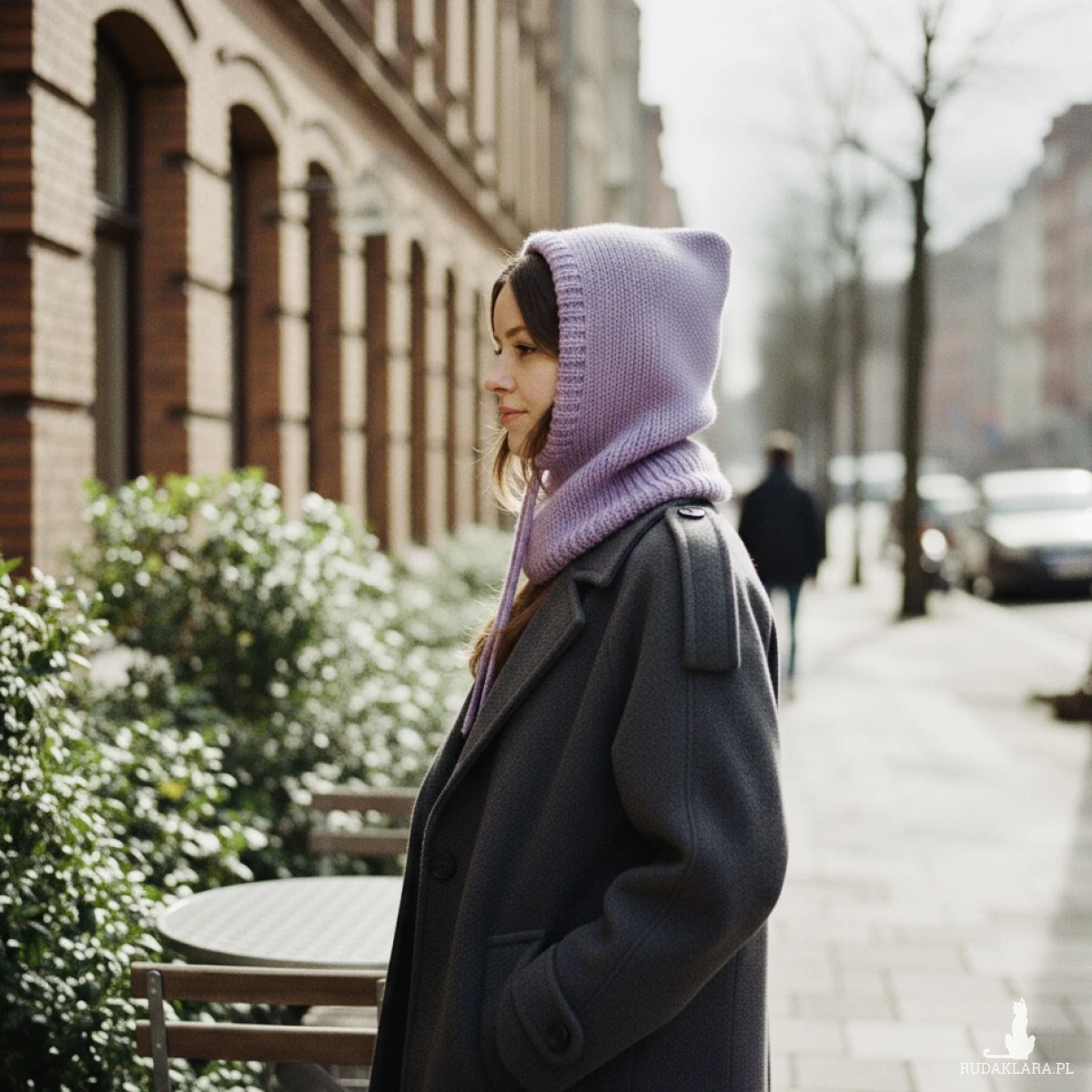 Balaclava świetnie sprawdzi się w chłodne dni – zarówno jako modny dodatek do płaszcza czy kurtki, jak i praktyczna osłona głowy i szyi podczas spacerów, jazdy na rowerze lub górskich wędrówek. Przy większym chłodzie można nałożyć ją głębiej na głowę i ściągnąć sznurki, w cieplejszą pogodę kaptur zdjęty z głowy wygląda ciekawie i efektownie.