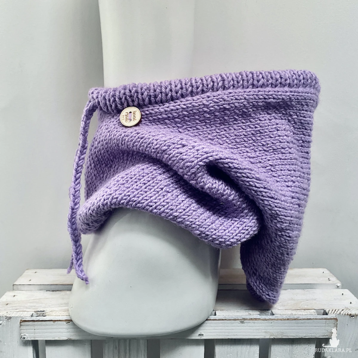 Kominiarkę oversize wykonałam ręcznie na drutach z miękkiej, wysokiej jakości, ciepłej włóczki. Skład 49% wełny merino i 51% akrylu łączy naturalne ciepło i oddychalność merynosa z trwałością oraz łatwą pielęgnacją akrylu. Dobrze trzyma kształt, nie rozciąga się nadmiernie i jest mniej podatna na filcowanie. Zapewnia ciepło bez przegrzewania, szybko schnie i sprawdza się w codziennym użytkowaniu.