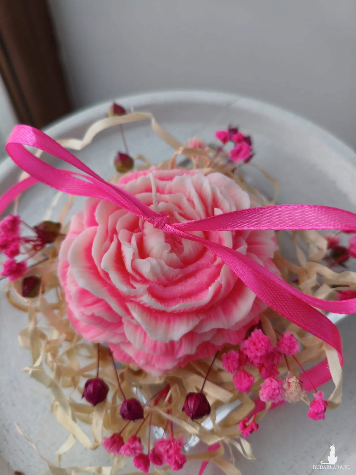 Świeca została dekoracyjnie zapakowana oraz starannie dobrane suszone kwiaty i inne dodatki. Idealna na urodziny, rocznice, ślub, walentynki, dzień kobiet, chrzest, komunię czy jako podziękowanie, łączy piękno natury z delikatnym aromatem, tworząc niezapomniane wrażenia.
