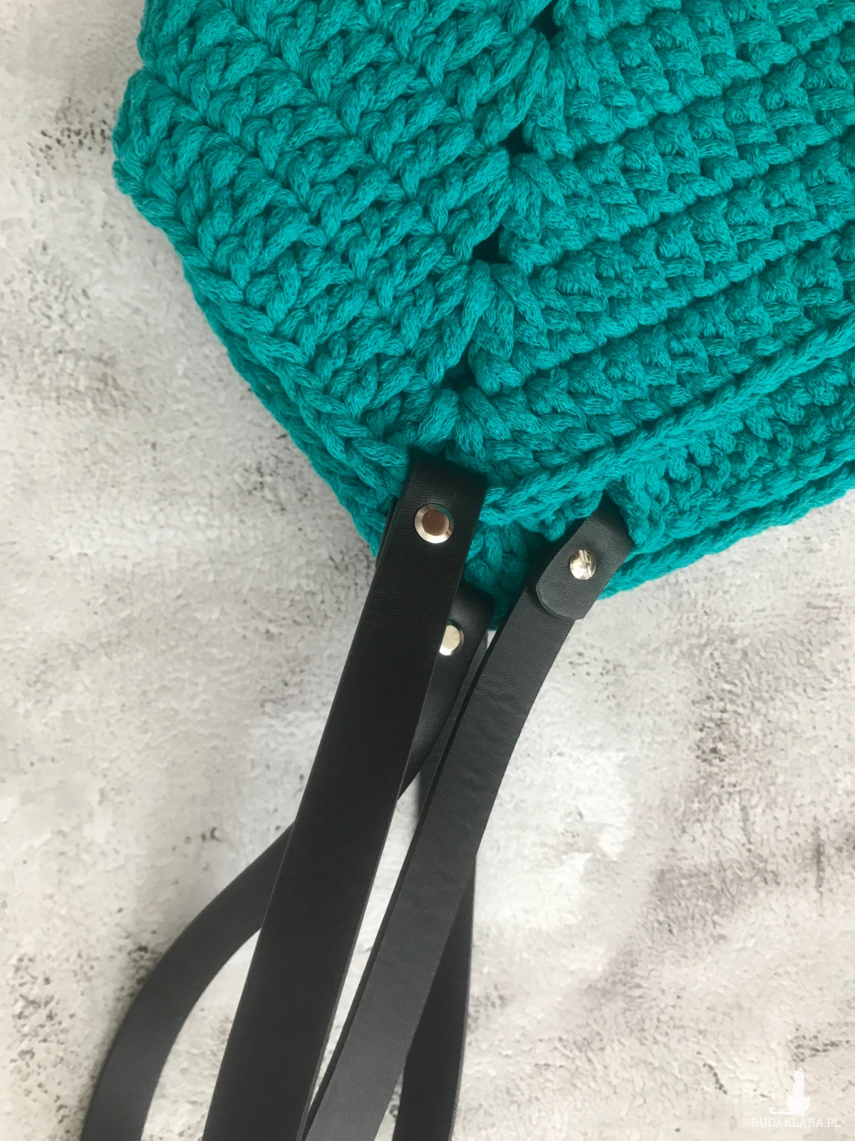 Torebka szydełkowa,siatka na zakupy z uchwytami wykonanymi z eko skóry.
