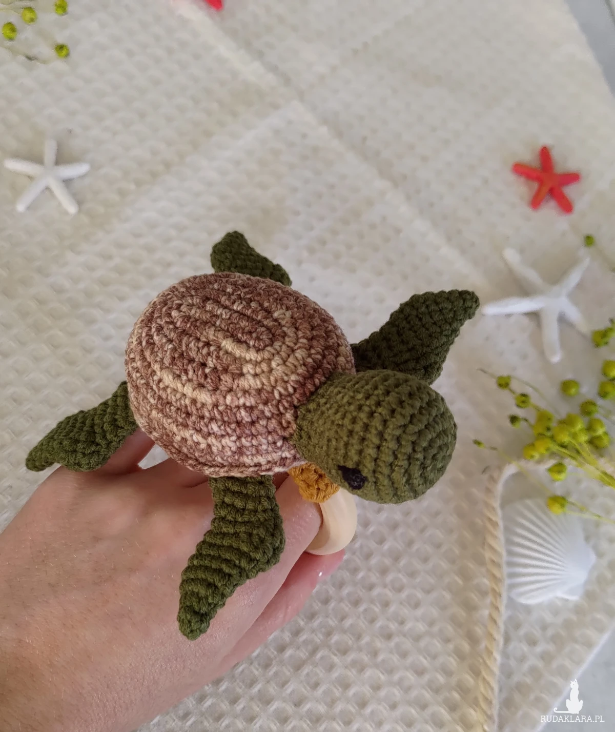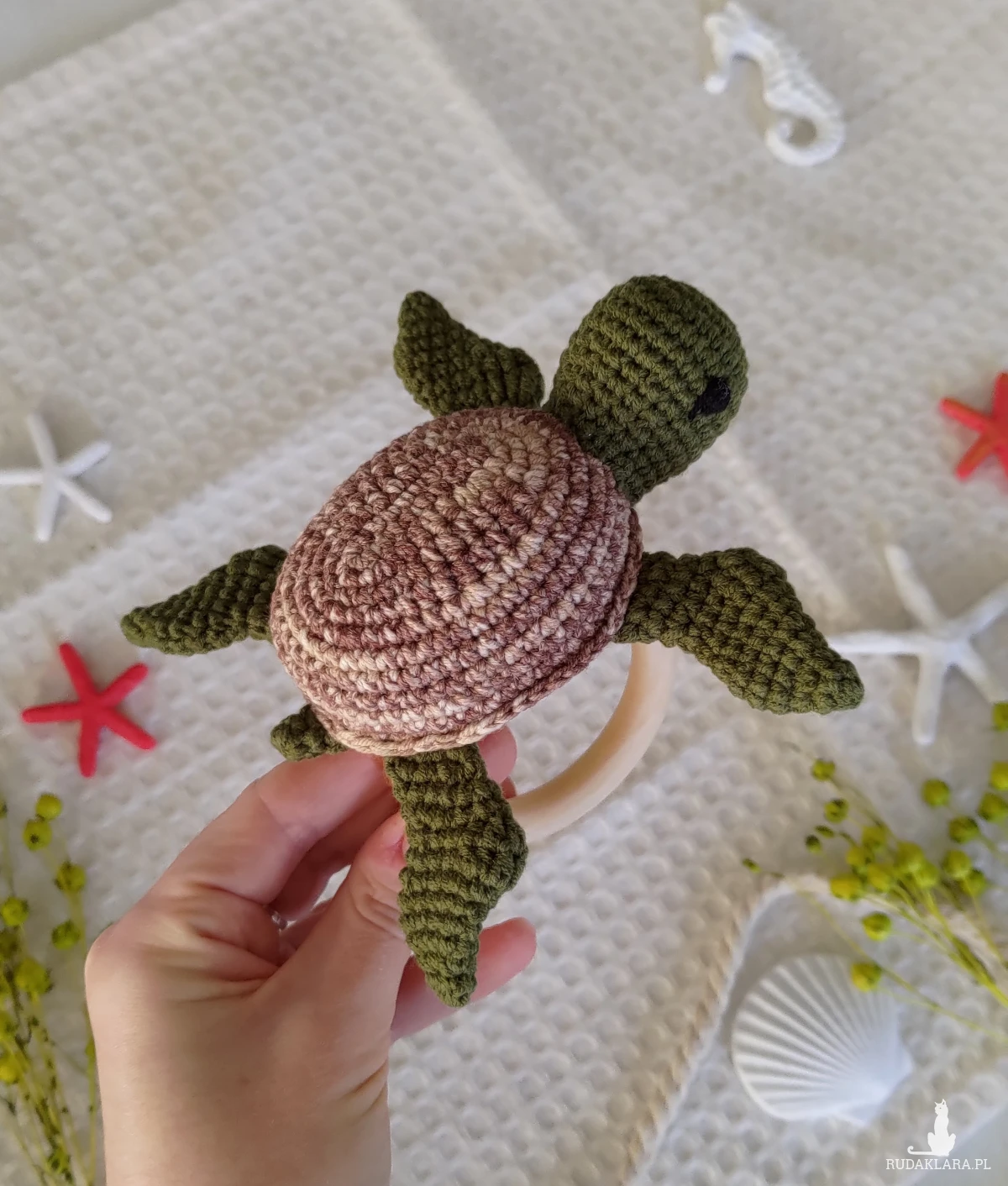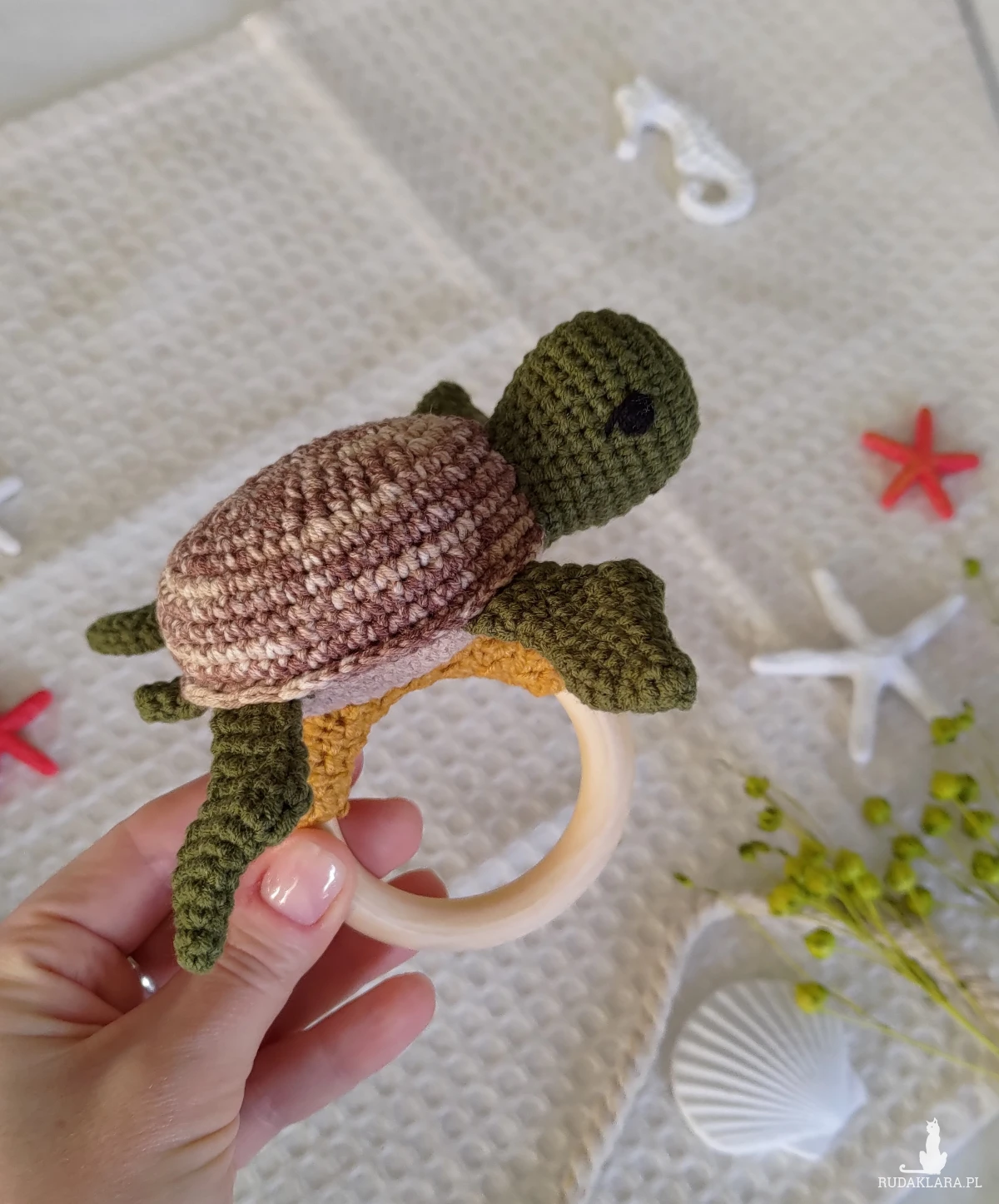 Szydełkowana grzechotka z żółwikiem to idealna pierwsza zabawka dla Twojego maluszka!