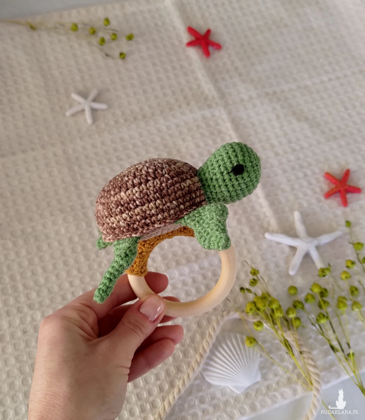 Szydełkowana grzechotka z żółwikiem to idealna pierwsza zabawka dla Twojego maluszka!