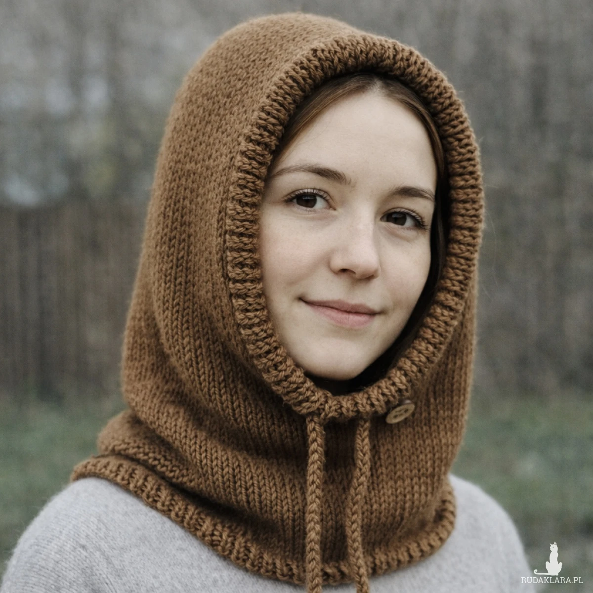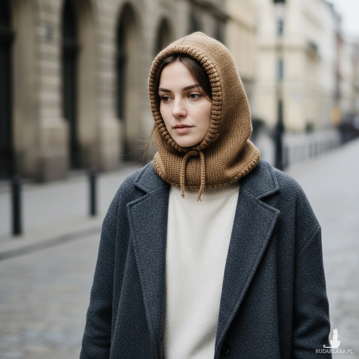 Balaclava oversize kominiarka kaptur zamiast czapki z merino camel