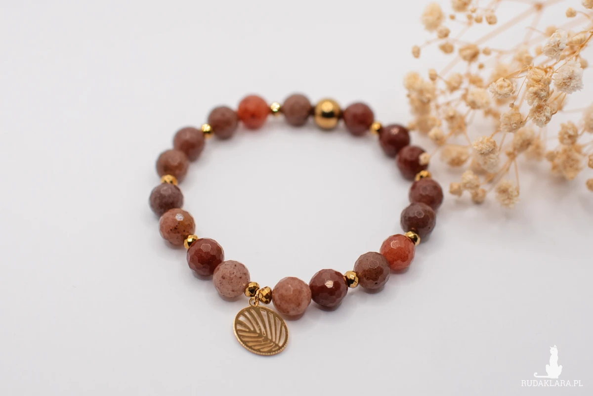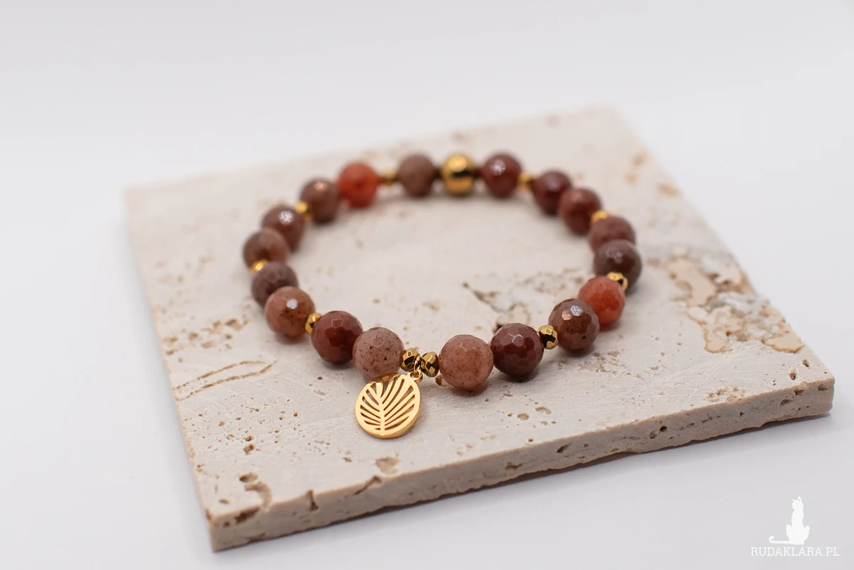 Brązowy awenturyn symbolizuje stabilność, spokój i uziemienie. Jego delikatne refleksy dodają bransoletce naturalnego blasku i wyjątkowego charakteru.