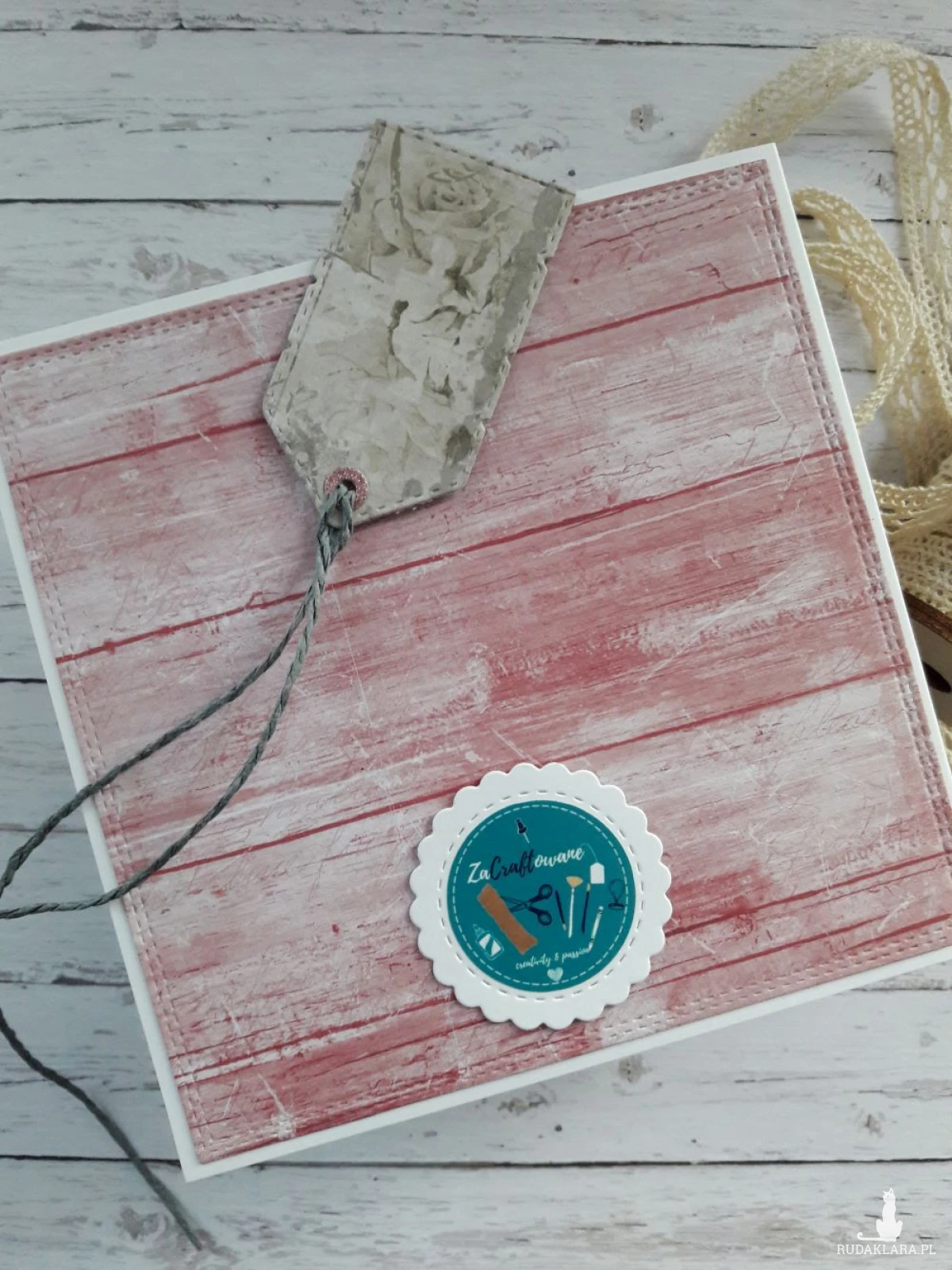 Do kartki dołączam GRATIS w postaci widocznej na zdjęciu etykietki, za pomocą której można podpisać upominek walentynkowy i przyczepić ją do wstążki, którą obwiązany jest prezent, za pomocą sznureczka, który również znajduje się w zestawie.