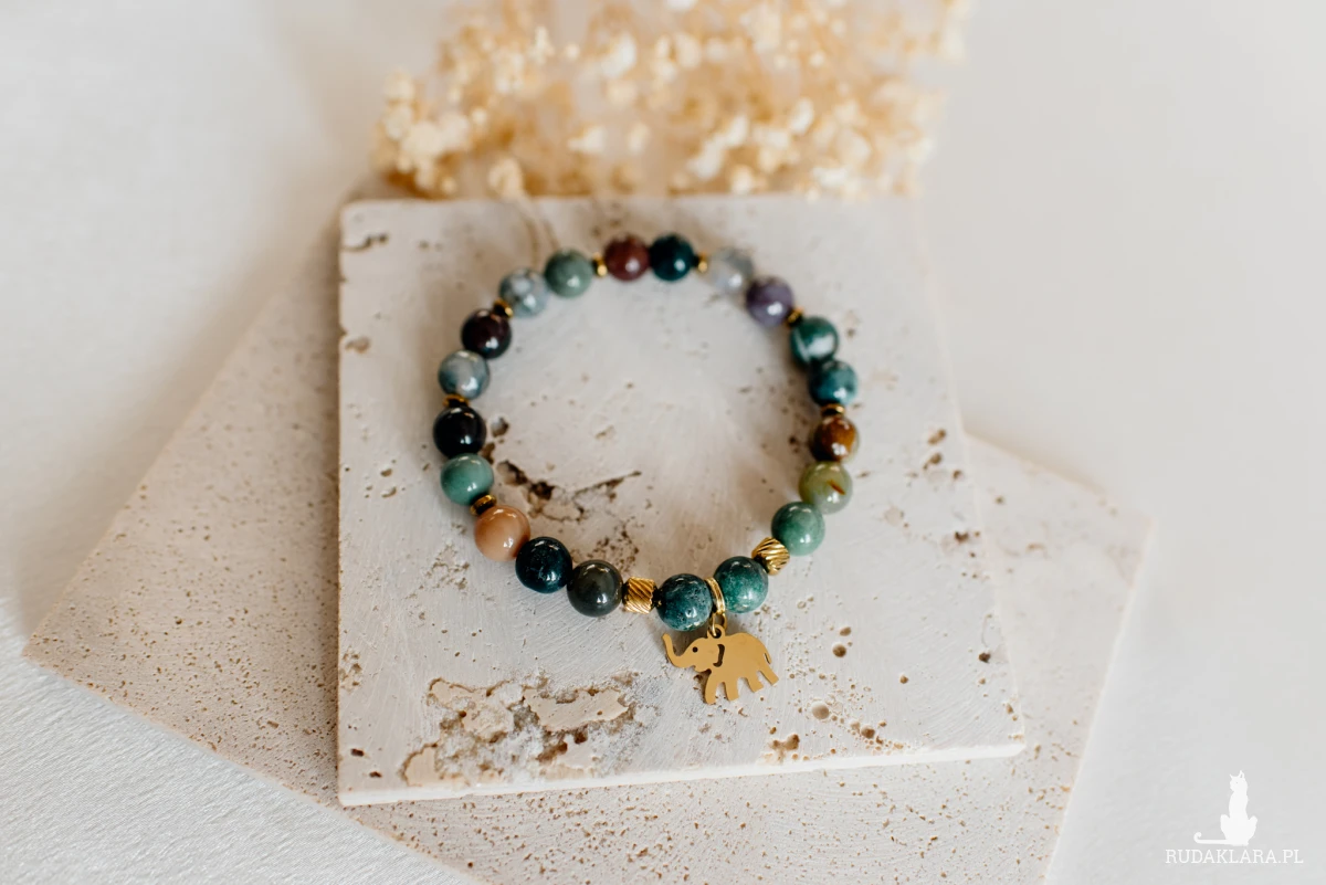 Agat indyjski równoważy emocje, przynosi spokój oraz łagodzi napięcia, zwiększa poczucie bezpieczeństwa i wspiera wewnętrzną harmonię, wspiera rozwój osobisty oraz wzmacnia koncentrację i cierpliwość.