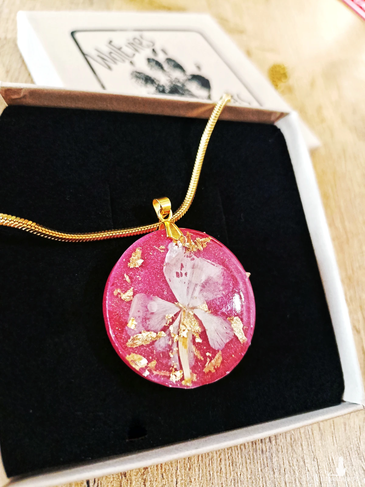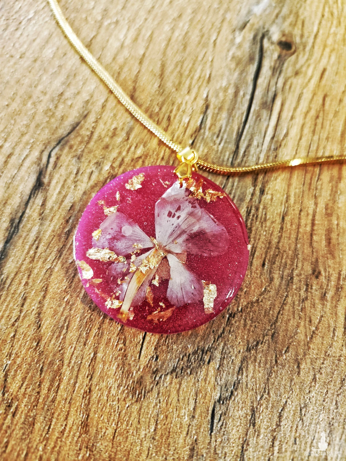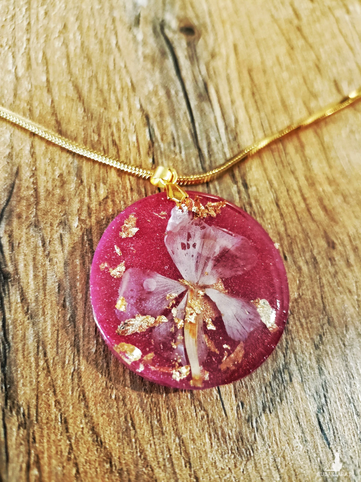 wisiorek z żywicy, wisiorek handmade, wisiorek z kwiatem, biżuteria z żywicy resin pro, prezent na dzień babci, zawieszka z suszonym kwiatem, biżuteria naturalna, wisiorek różowy złoty, duży wisiorek ozdobny, biżuteria rękodzieło