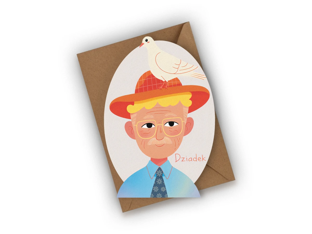 Kartka na Dzień Dziadka- Dziadek z gołębiem