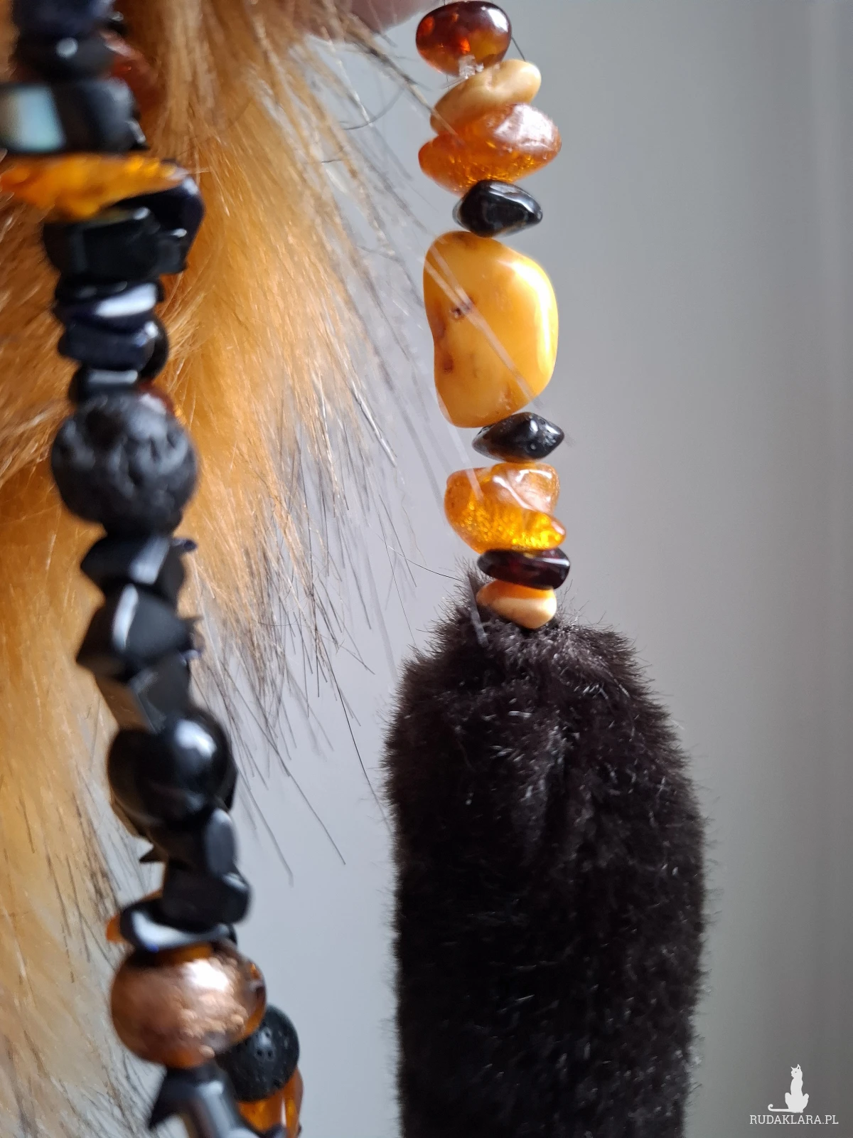 - mniejszy pompon z bursztynami w różnych odcieniach.