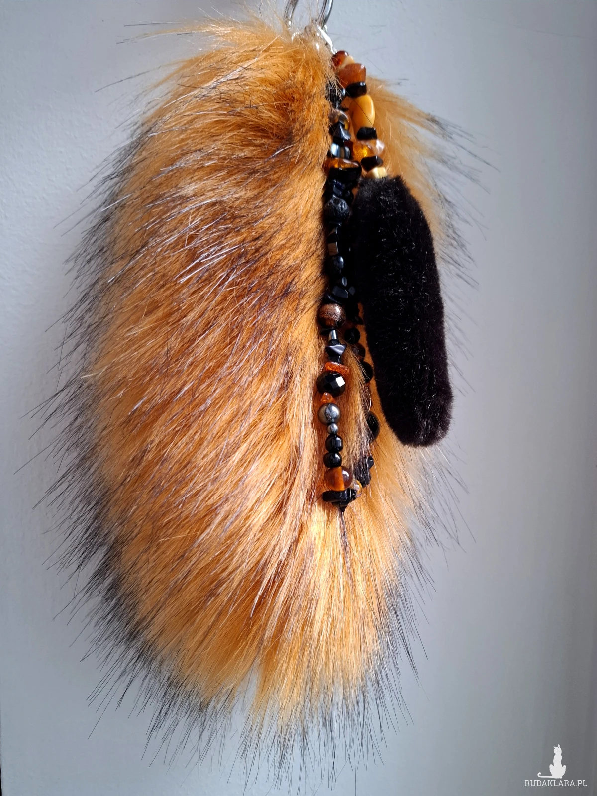- duży futrzany pompon w miodowym kolorze o długości ok. 24 cm