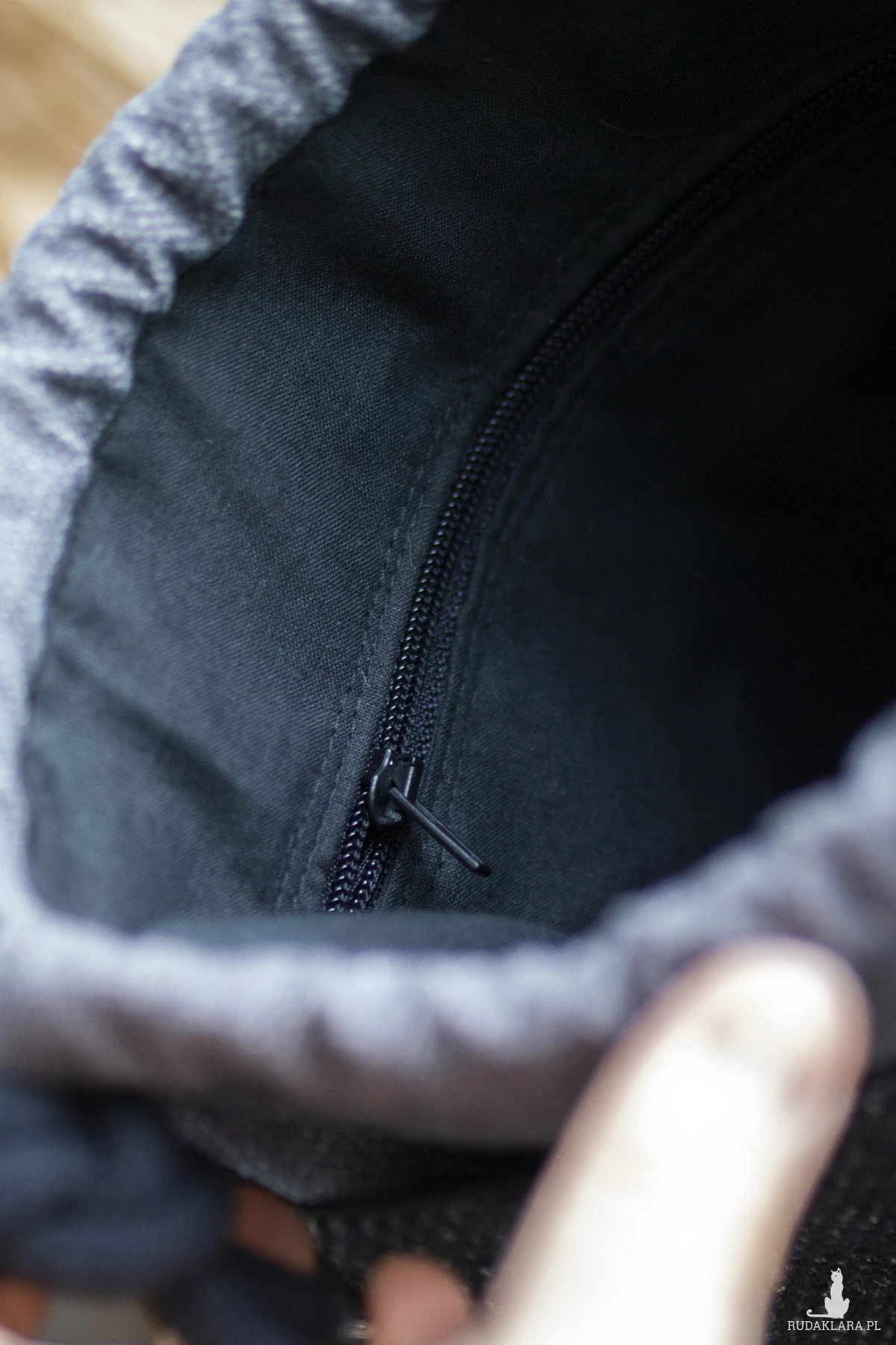 Całość ściągana grubym, bawełnianym sznurkiem w kolorze czarnym.