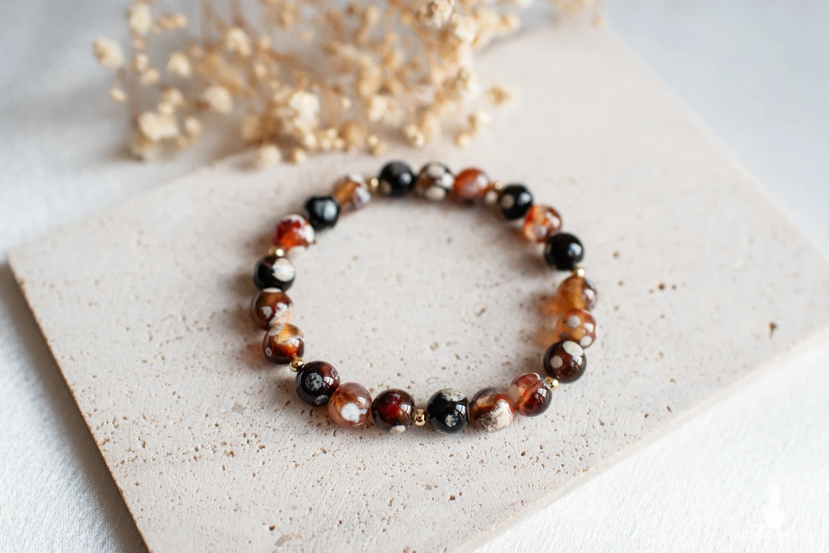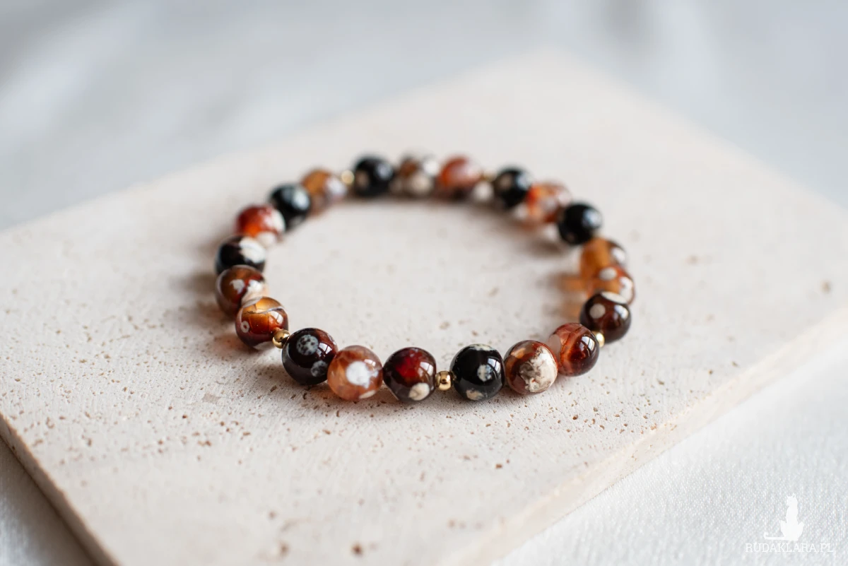 Agat śniegowa magia symbolizuje czystość, równowagę i ochronę. Wzmacnia pewność siebie, stabilizuje emocje, oczyszcza aurę oraz przynosi spokój.