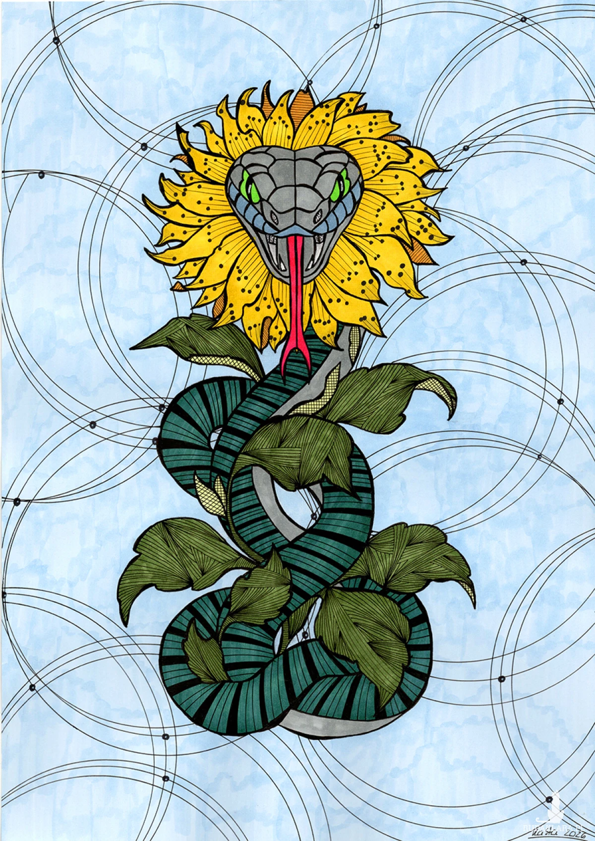 To roślina, która zamiast łagodnego kielicha, ukazuje swoje groźne, wężowe oblicze, a jej łodyga oplata przestrzeń niczym żywe stworzenie.