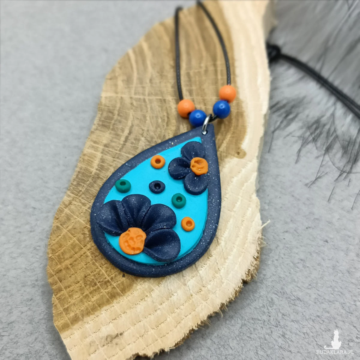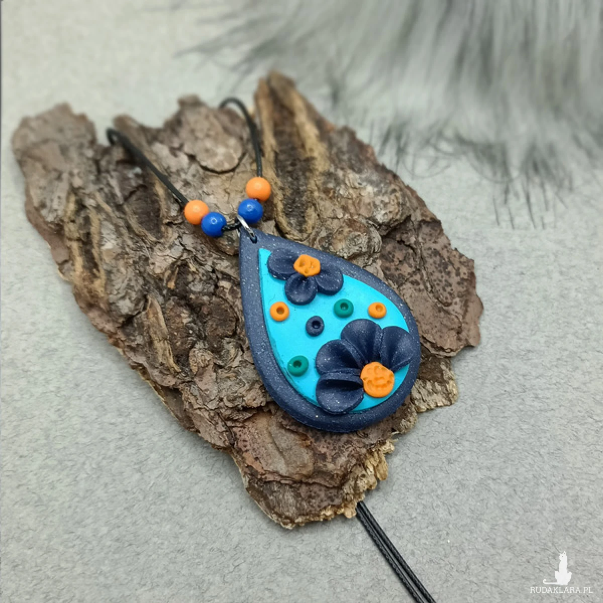 Wisiorek został wykonany w całości ręcznie z wysokiej jakości glinki polimerowej. Jest to materiał bardzo trwały, lekki i odporny na wszelkiego rodzaju czynniki zewnętrzne.
