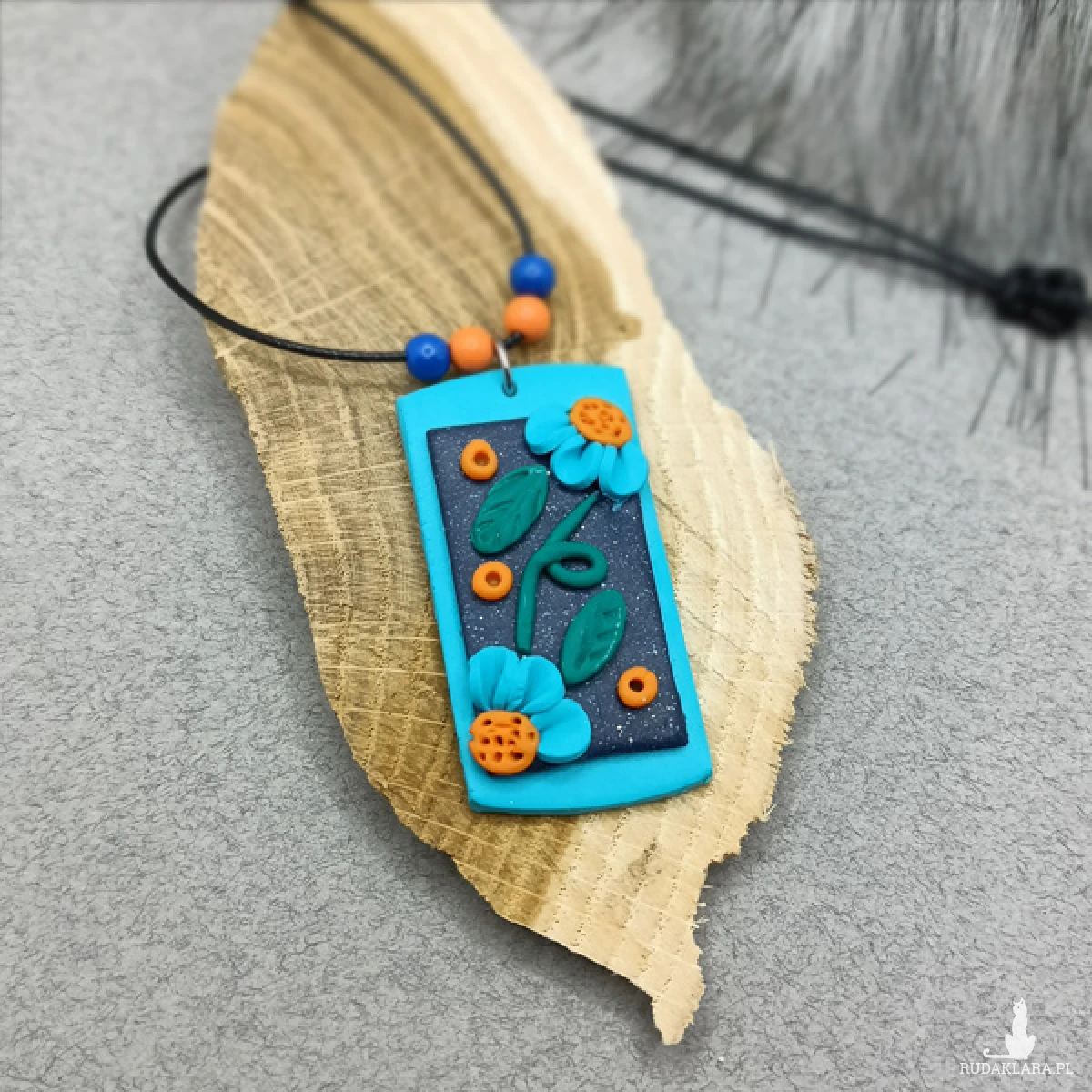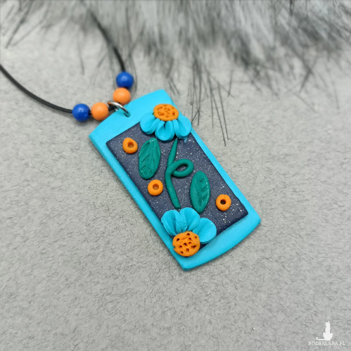 Wisiorek został wykonany w całości ręcznie z wysokiej jakości glinki polimerowej. Jest to materiał bardzo trwały, lekki i odporny na wszelkiego rodzaju czynniki zewnętrzne.