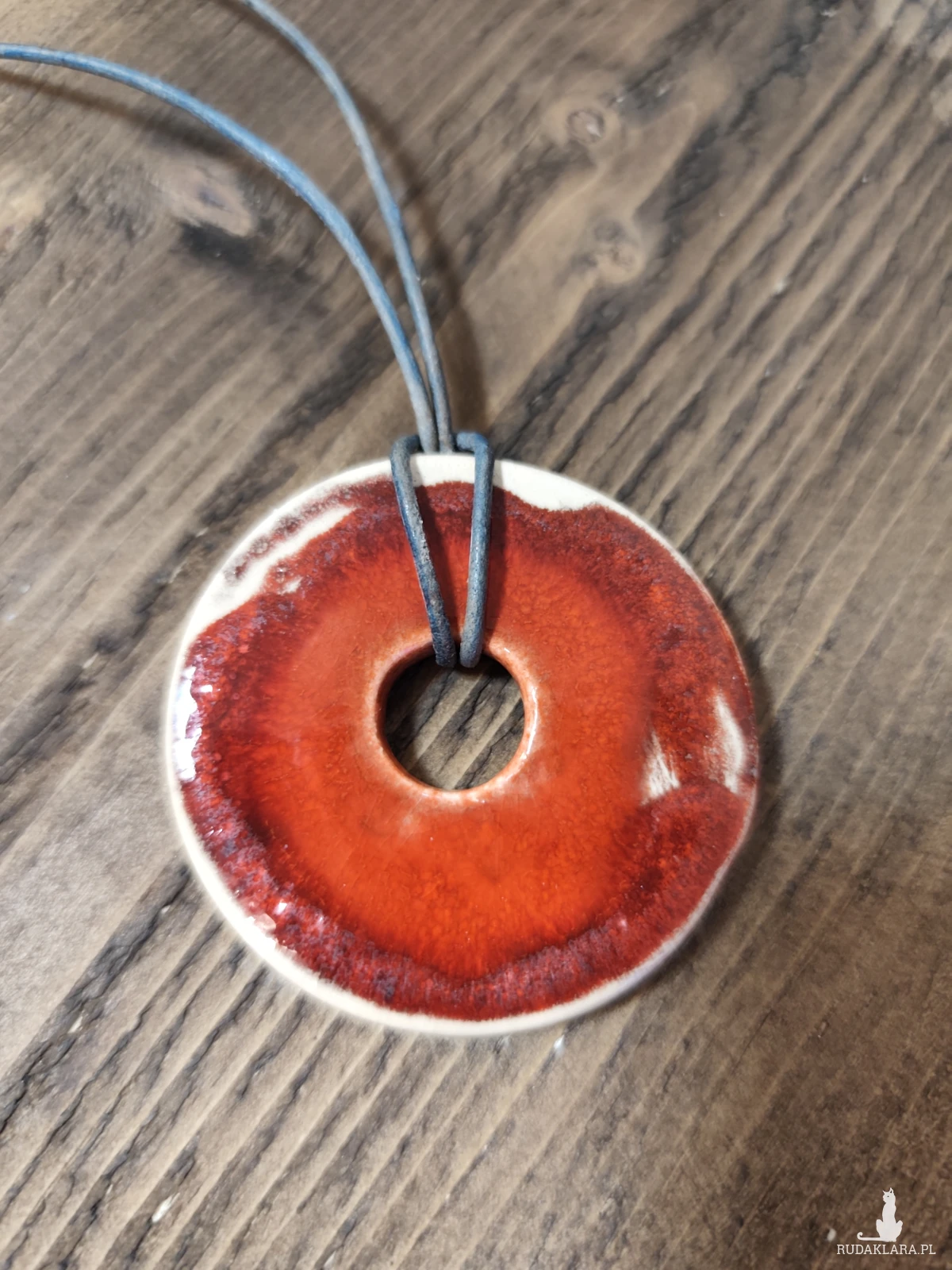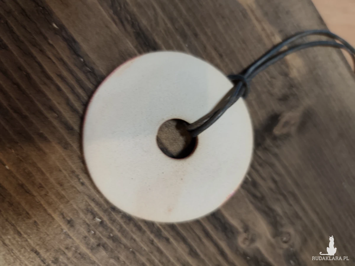 Piękne w kolorze, proste w kształcie wisiory wykonane ręcznie z gliny ceramicznej. Biżuteria dla osób ceniących rzemiosło i przedmioty z duszą. Wyjątkowy dodatek do codziennych stylizacji lub oryginalny prezent. Średnica około 5 cm.