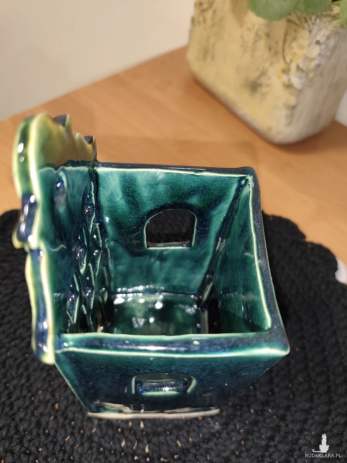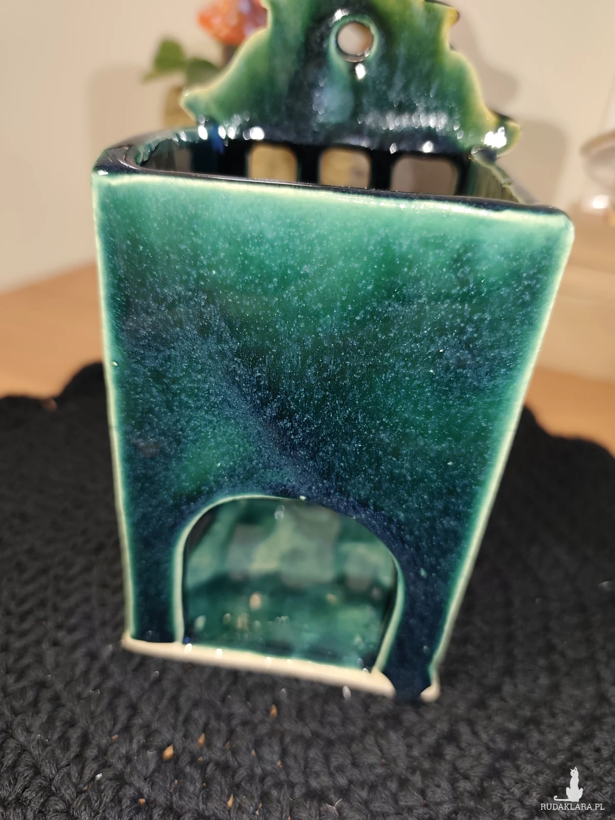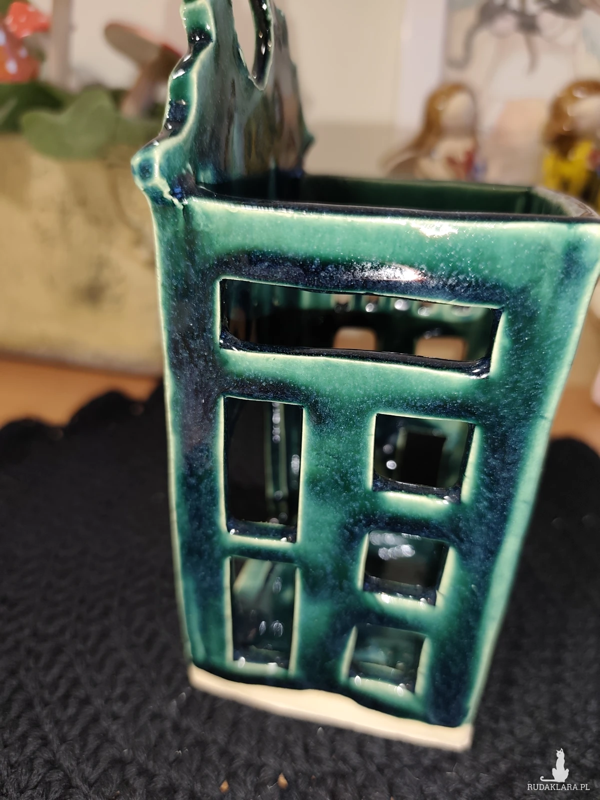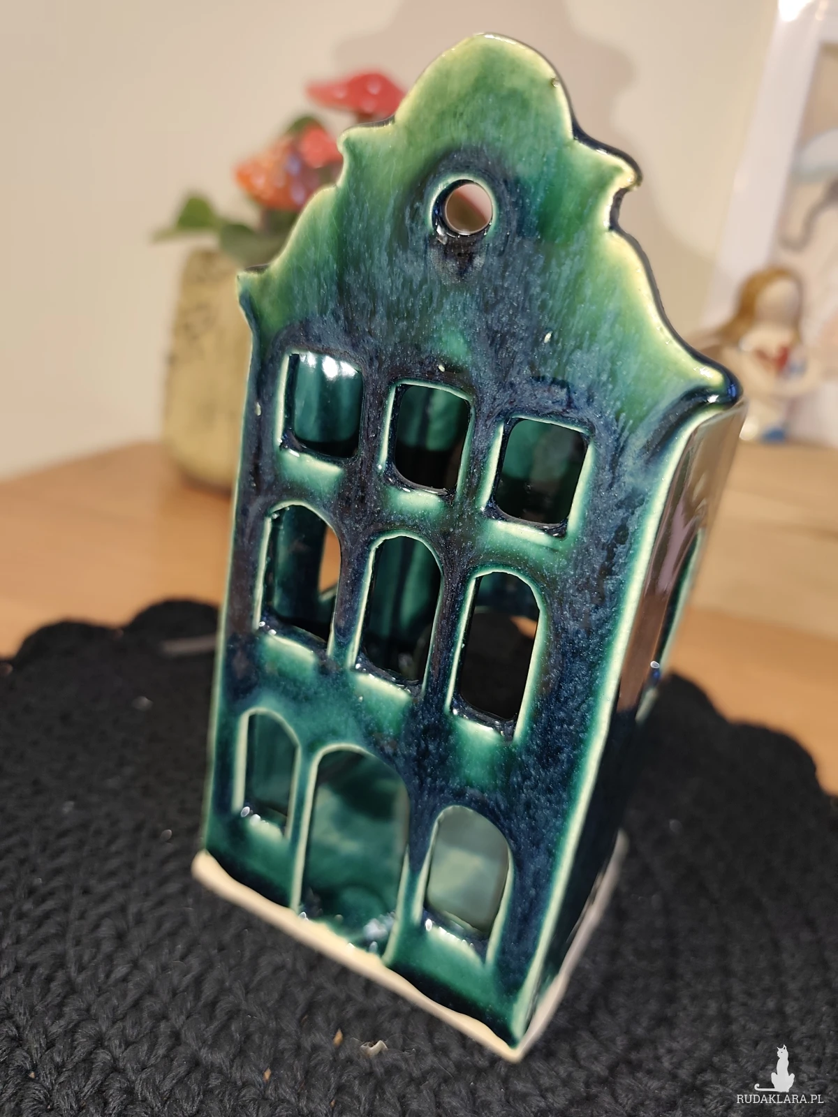 Lampion ceramiczny w postaci kamienicy wykonany z gliny - dwukrotnie wypalany w piecu ceramicznym na wysoką temperaturę. Wysokość 17 cm. Serdecznie polecam do ozdoby domu na Święta lub jako upominek. Czas oczekiwania na realizację ok 2 tygodni.