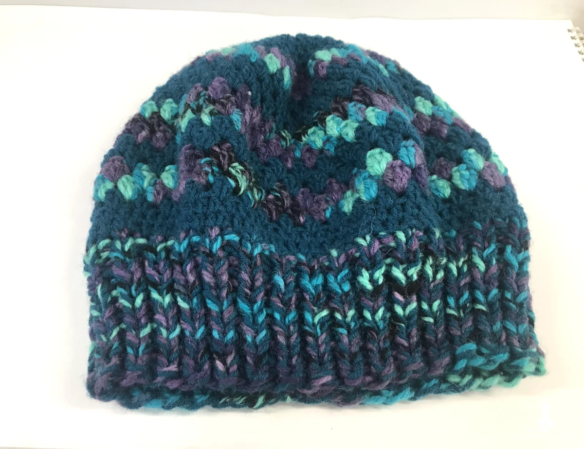 Nowa, oryginalna, ręcznie wykonana czapka zimowa (druty + szydełko)