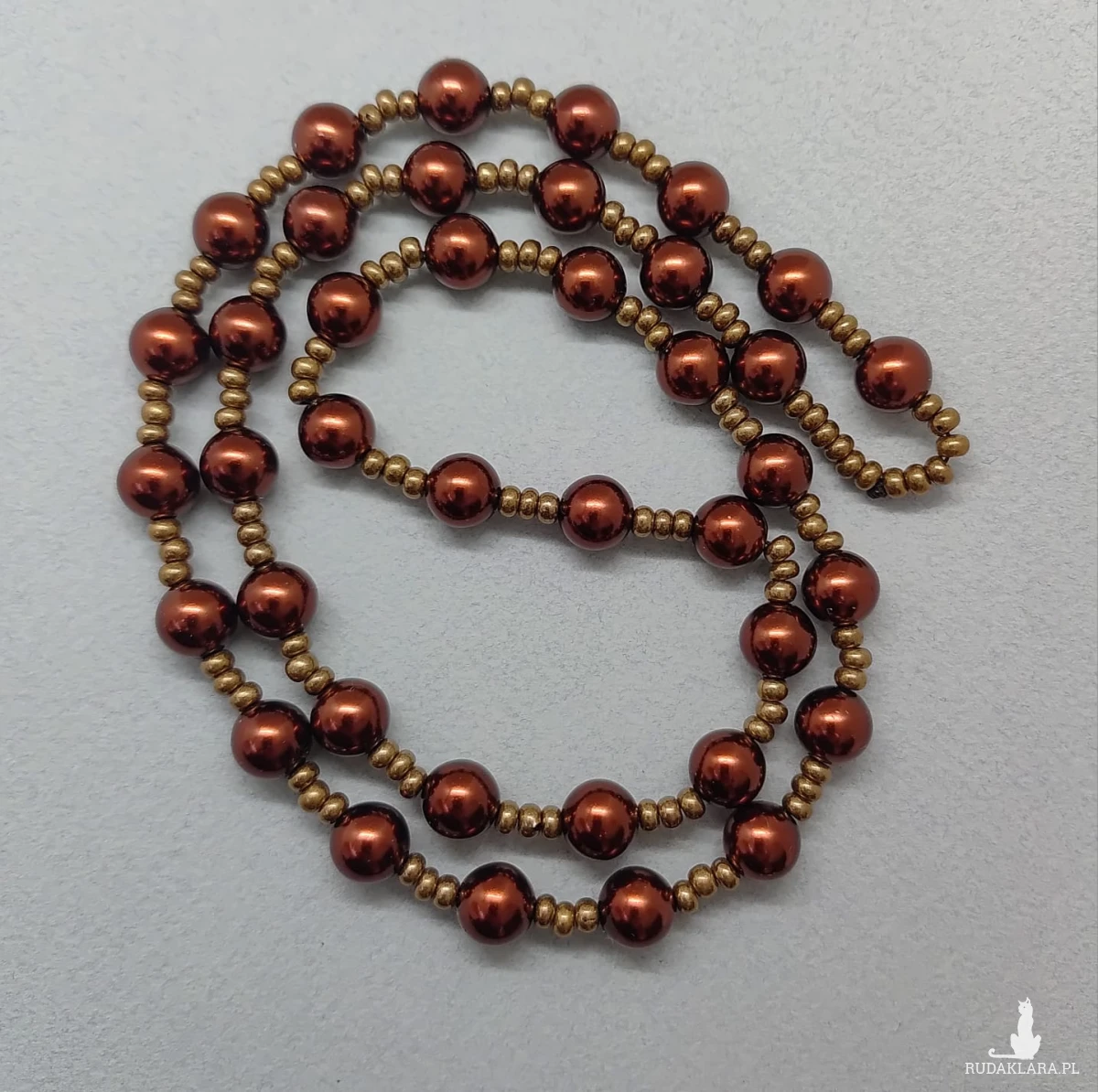 Naszyjnik Perły Czekoladowe Szklane Metalizowane