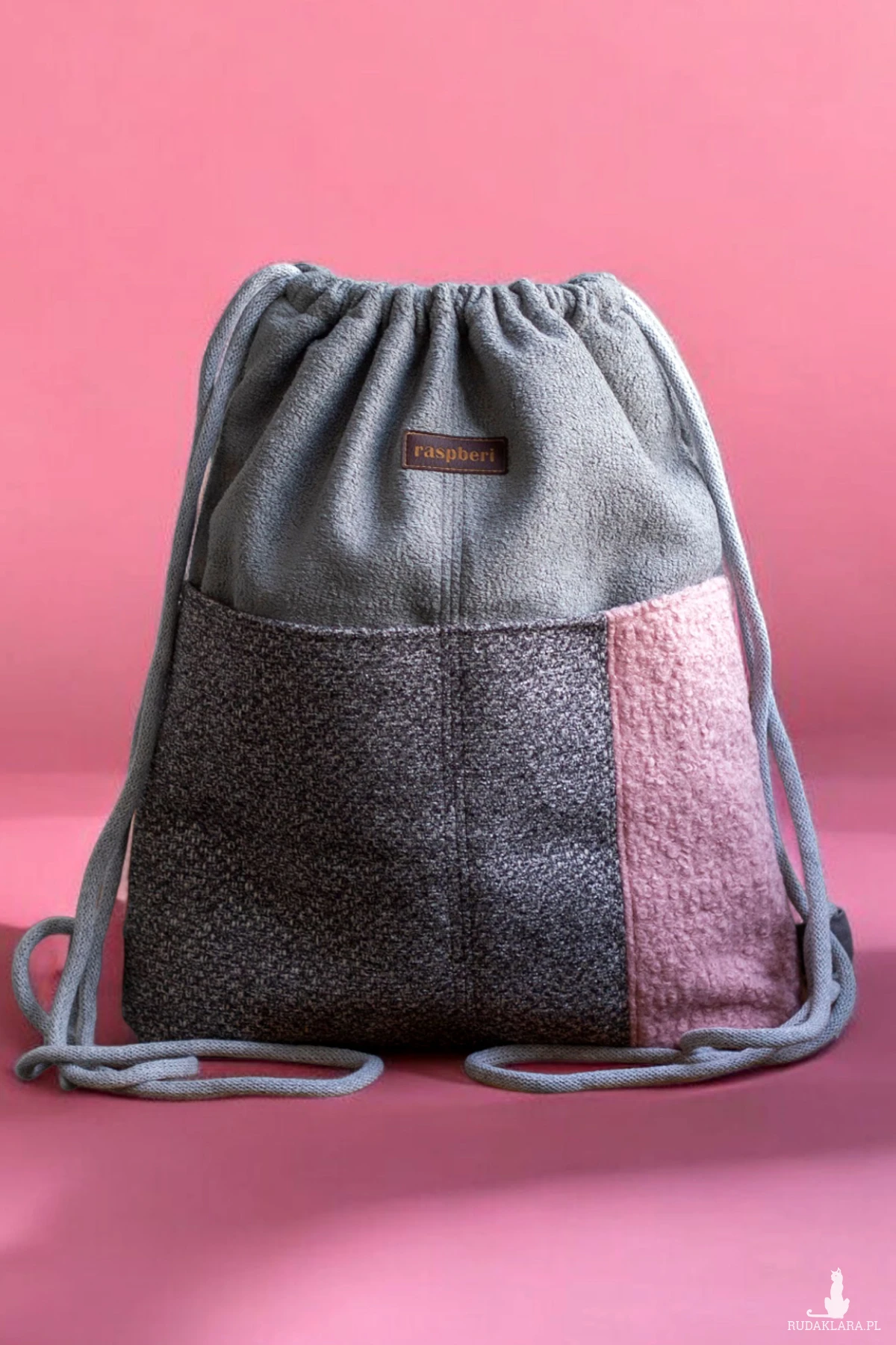 Workoplecak z szarej bukli.